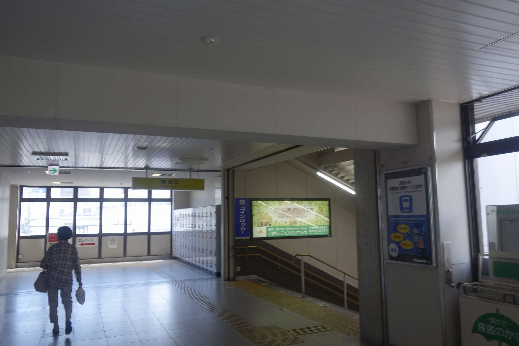 南出口へと通ずる階段を降りて