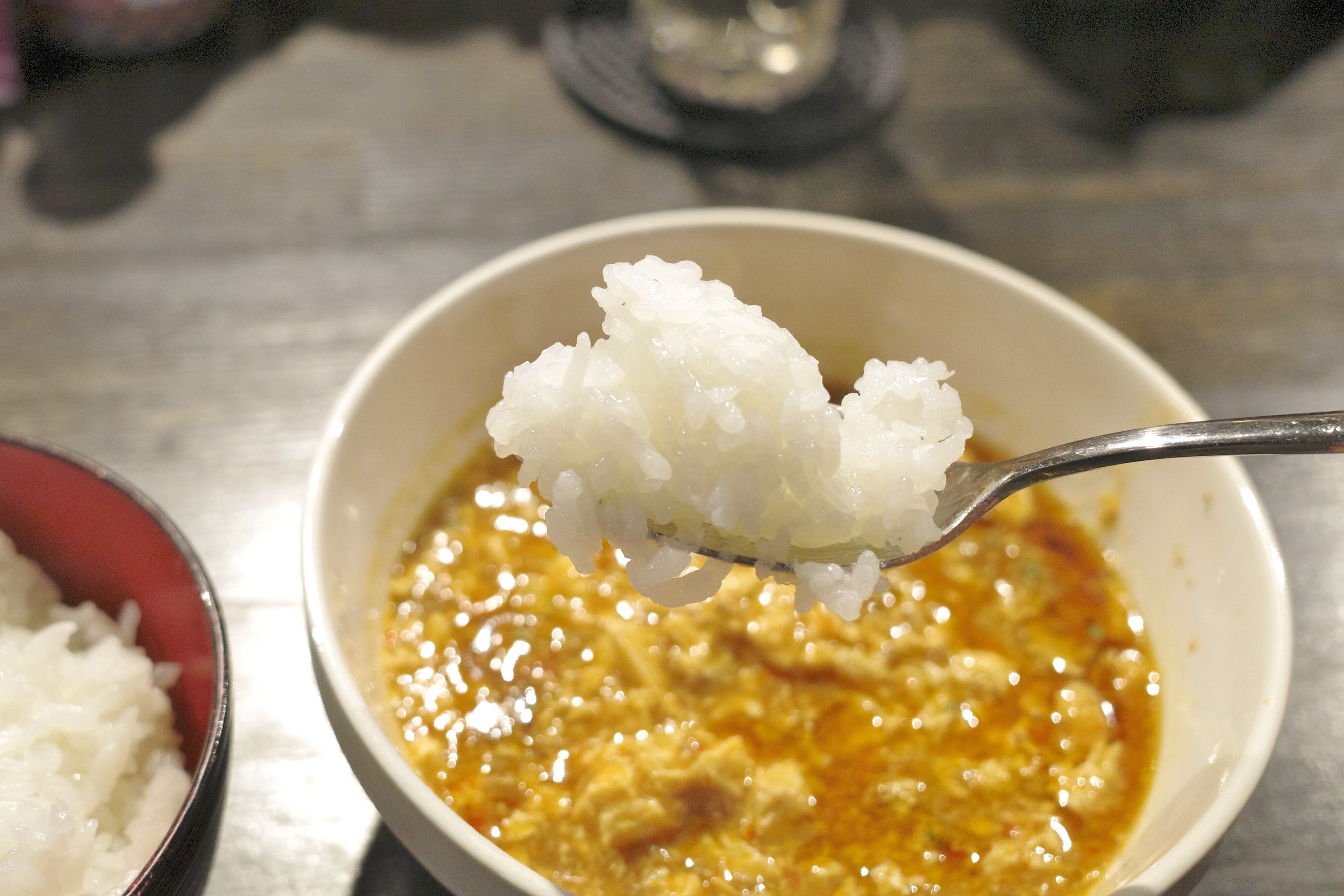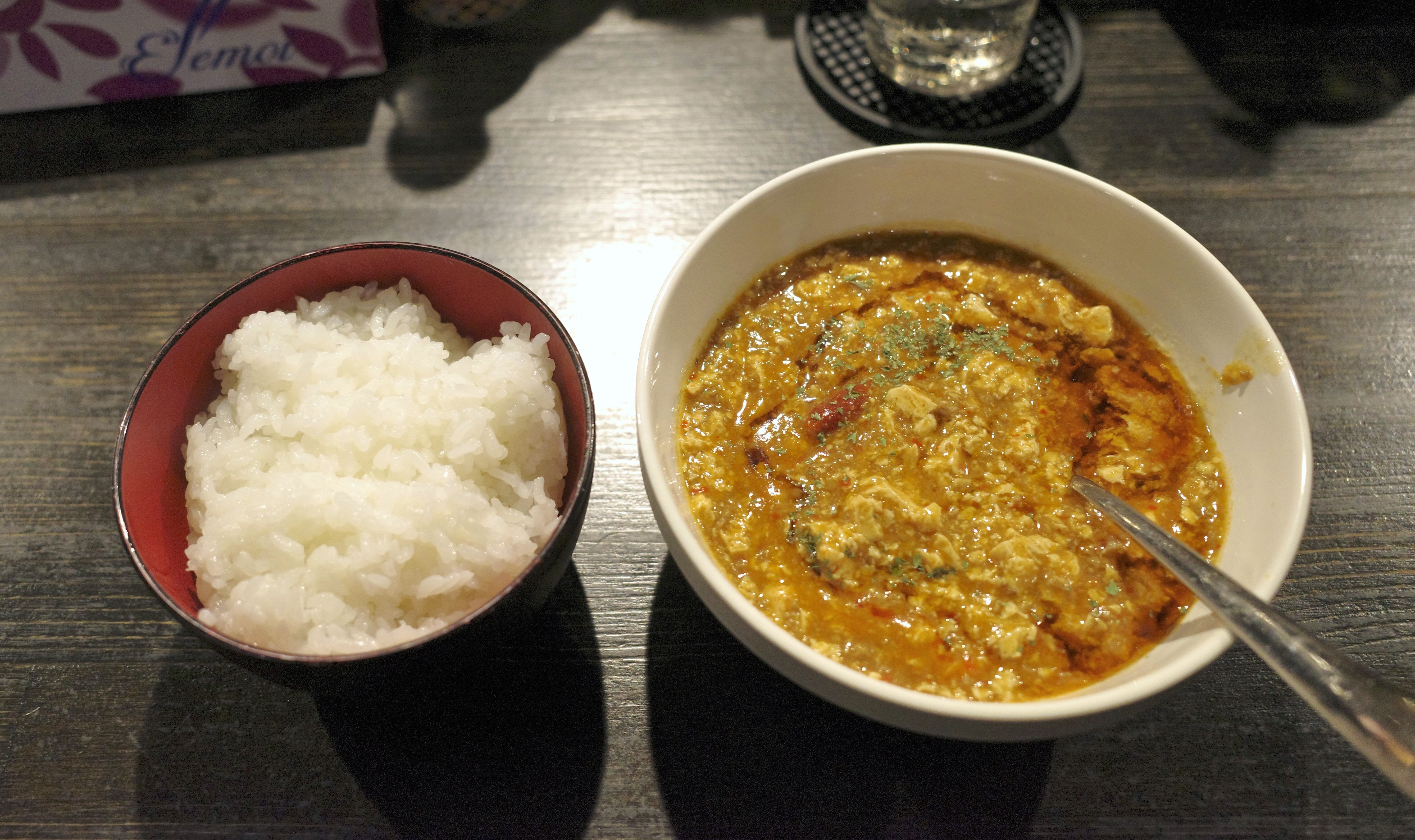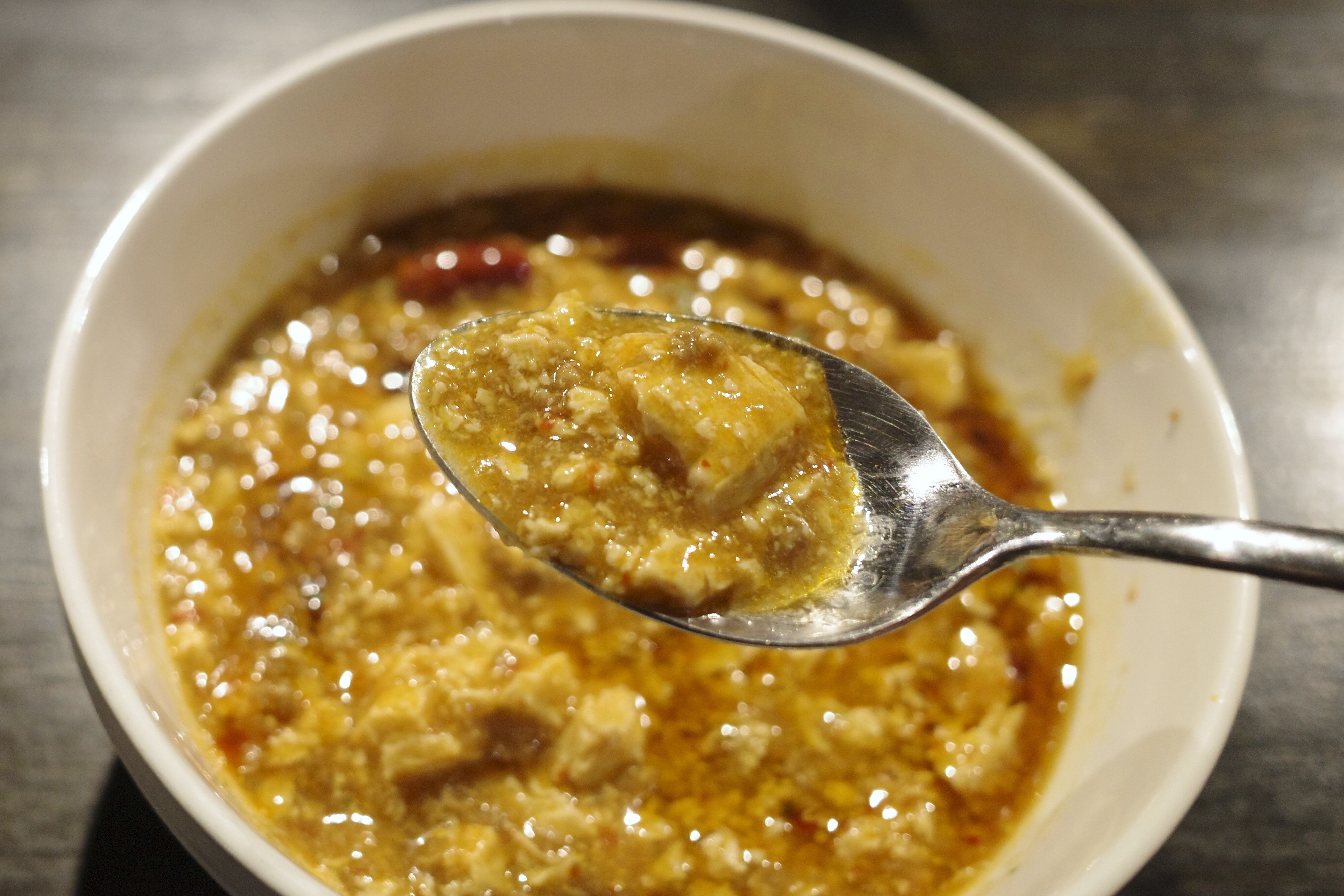 いざ「麻婆豆腐」を口にすると、粗挽き肉の食感と旨味、唐辛子の辛味、塩気とともに旨味の塩梅グーな麻婆餡がソフトな舌触りの豆腐にマッチしてウマー!