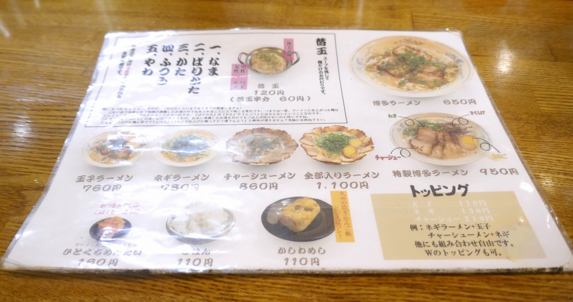 裏手がおつまみメニュー、アルコールメニューとなっており、ラーメン居酒屋としても使えそうなお店となっていました。