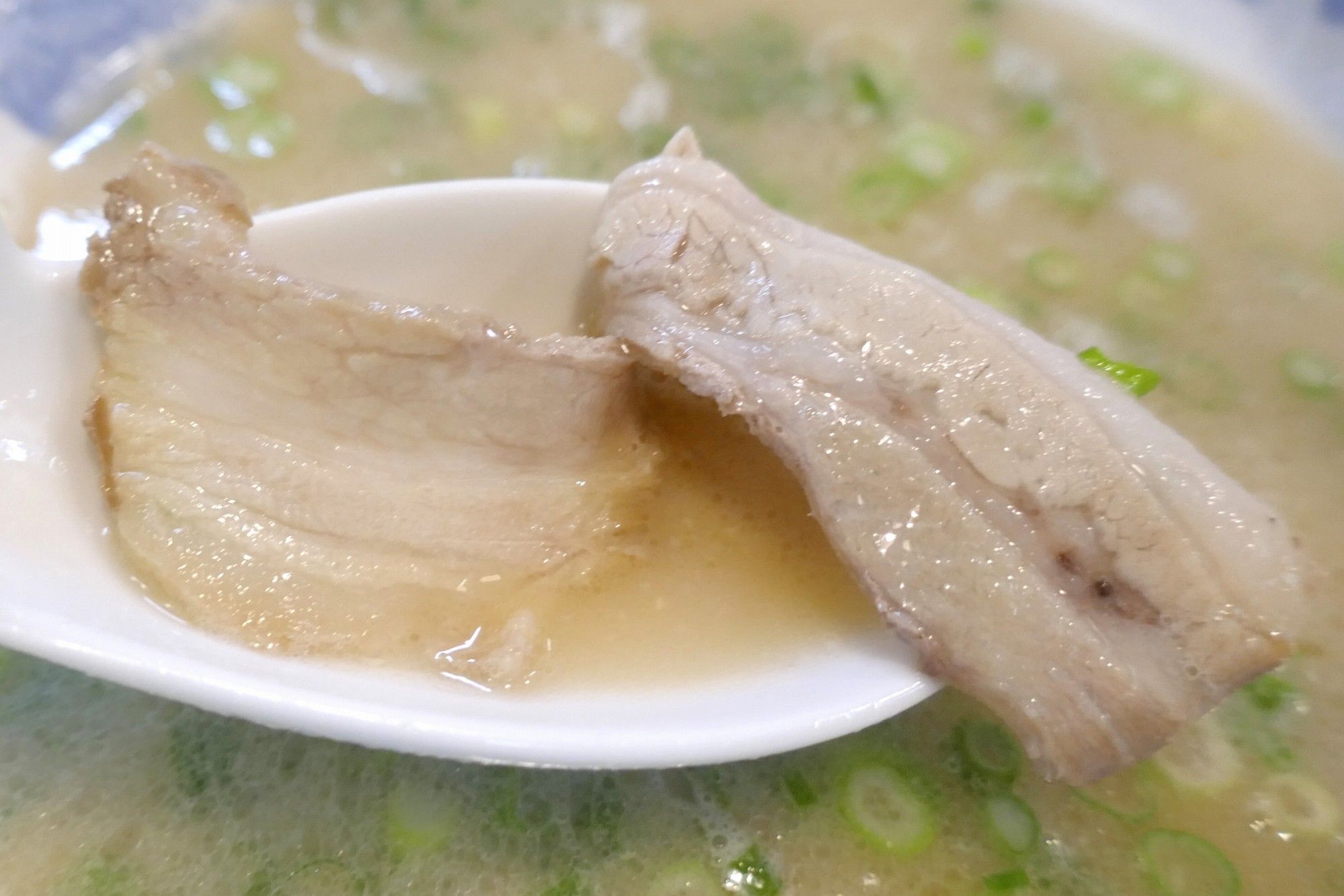 シャバシャバ系豚骨スープは脂っこさがほとんど感じられず、旨味とコクに優れていながらも後味キリリと楽しめるのが好印象です。