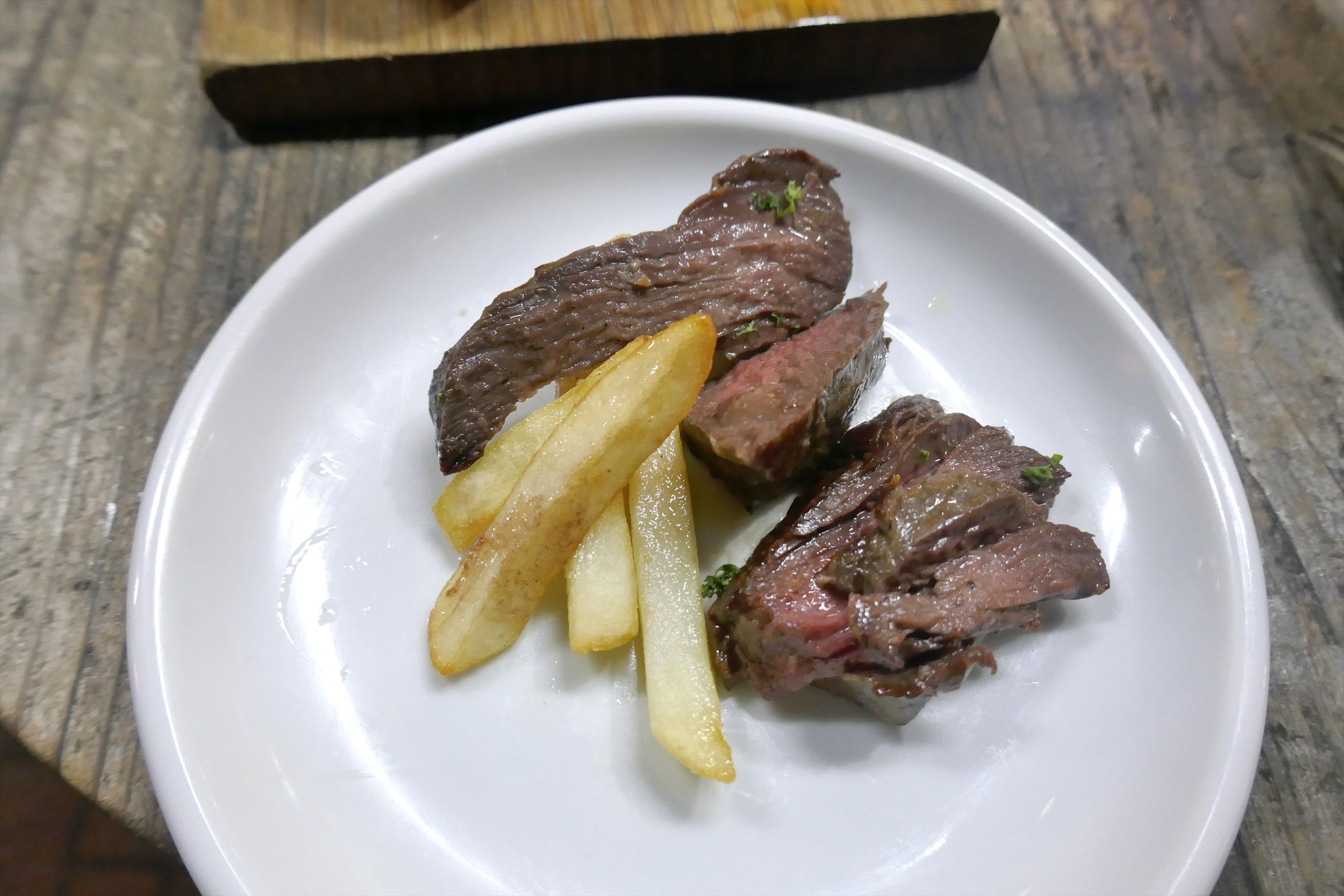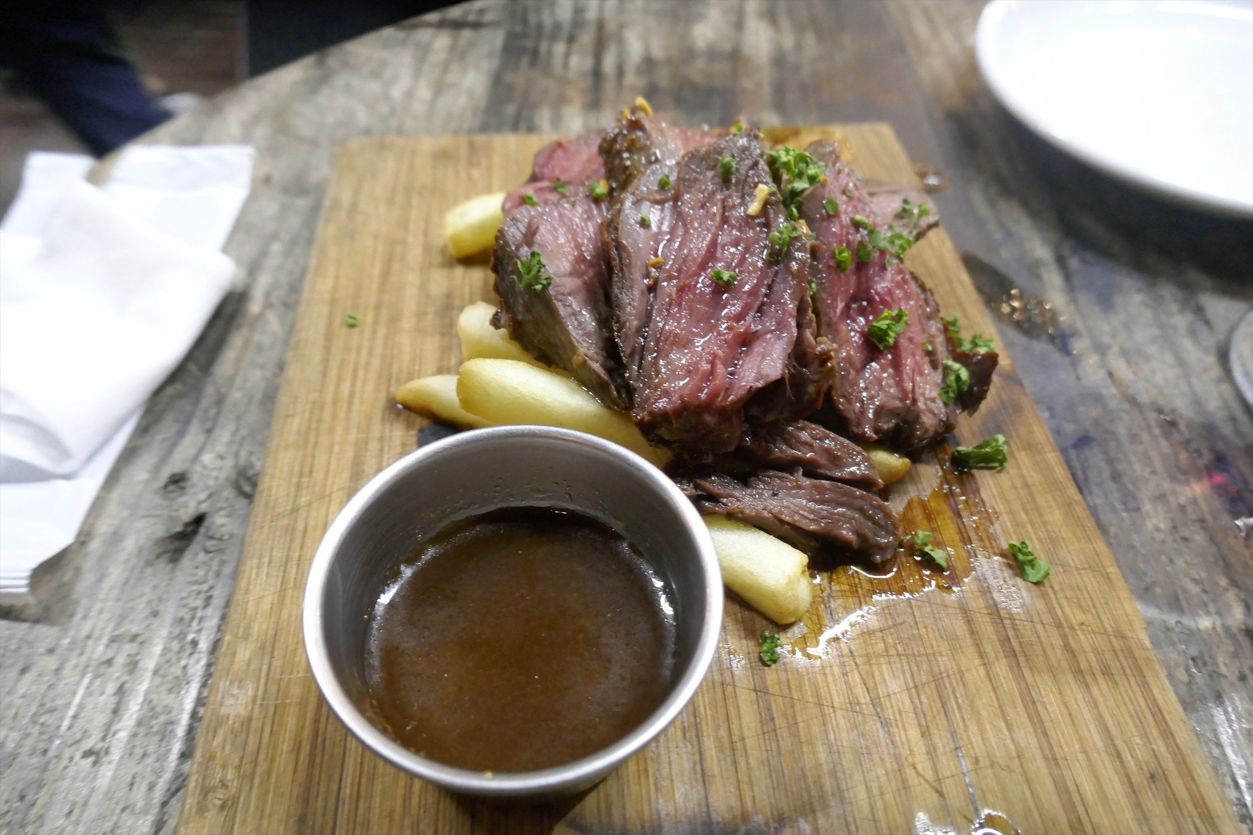 「タリアータ」はお肉が柔らかく甘めのソースとマッチ!さらに熱々ホクホクなフライドポテトと絡めて食べることでジャンクな美味しさに満足!