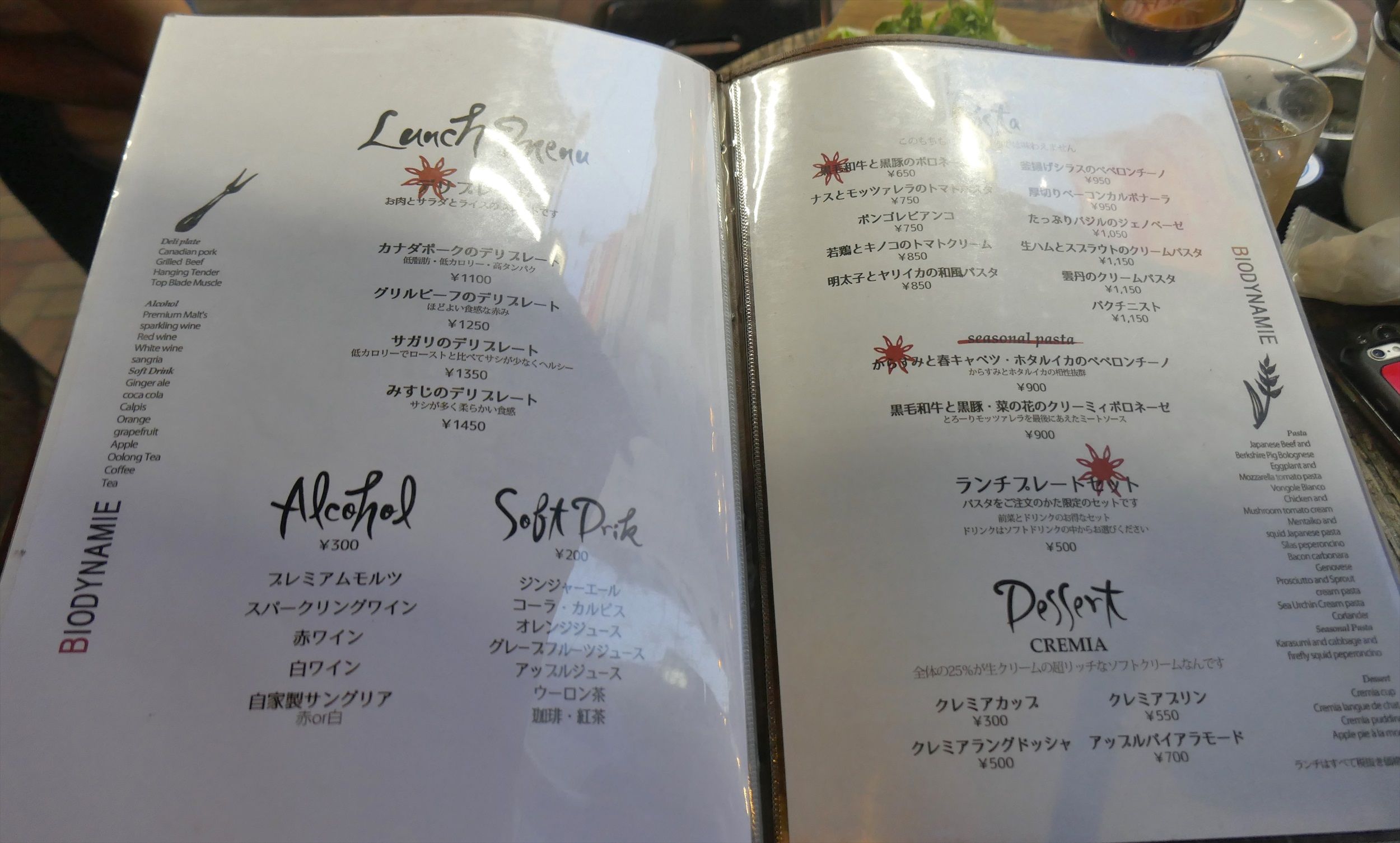 ランチメニュー、パスタメニュー、デザートメニューでメニューは以上です。