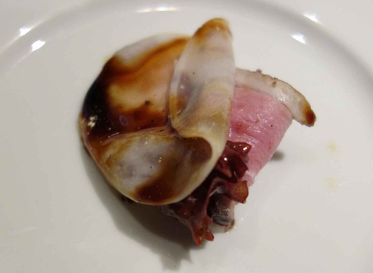 チョコレートの様な色のソースはバルサミコ酢を使用したソースの様で