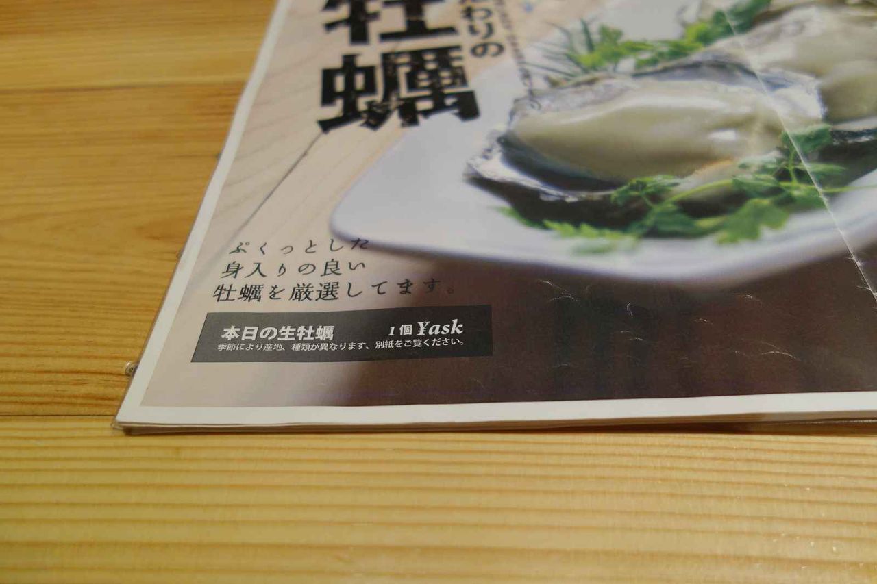 生牡蠣はaskとある事から、時期によって大きく値段が変わるのかも知れません。