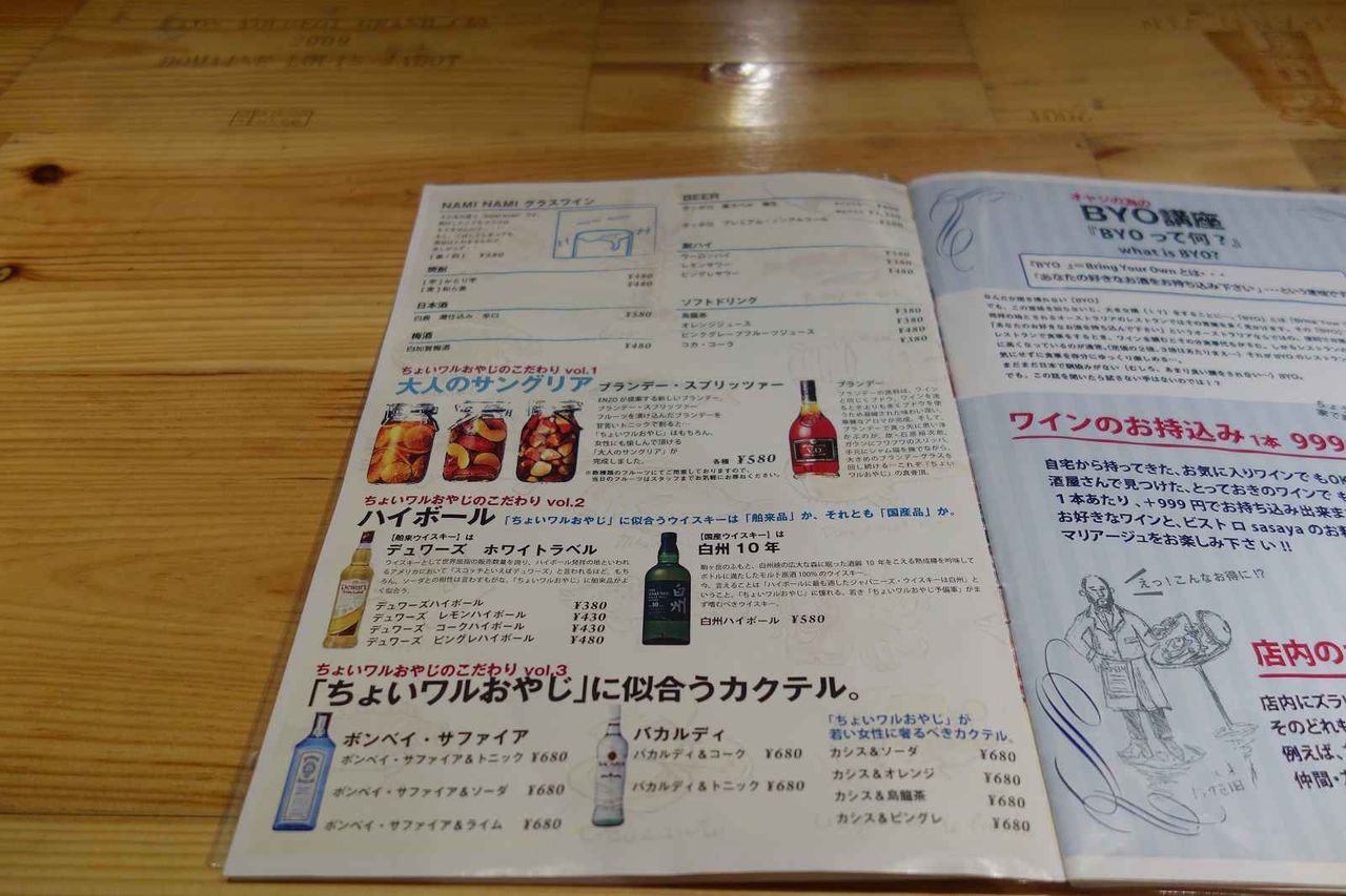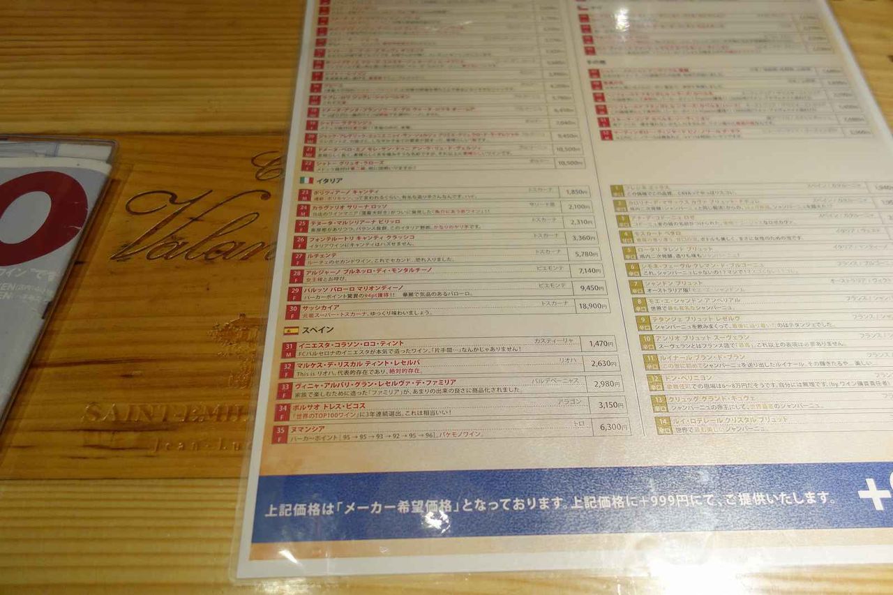 メニュー表下にはお約束の+999円がお店の提供価格とあります。
