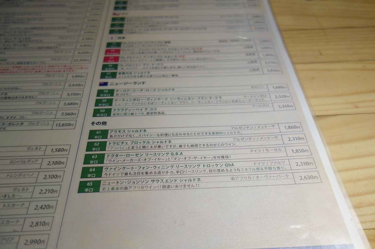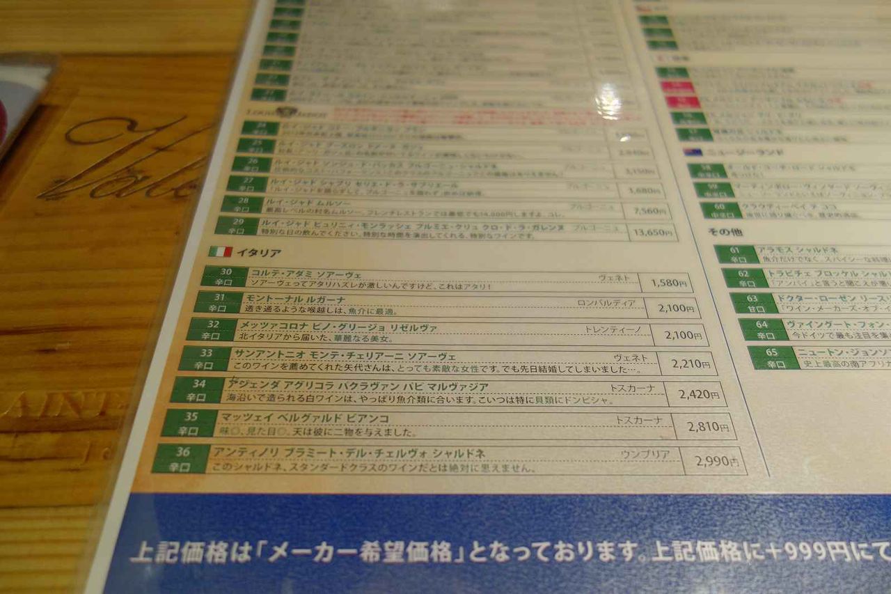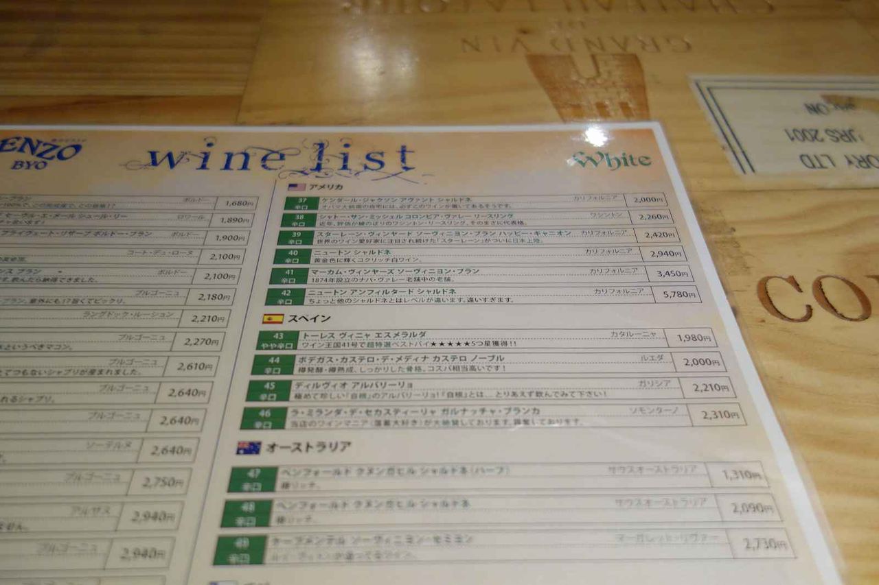 この日一緒に食事を食べる方がお店に入ってきたので,白ワインリストの8番の