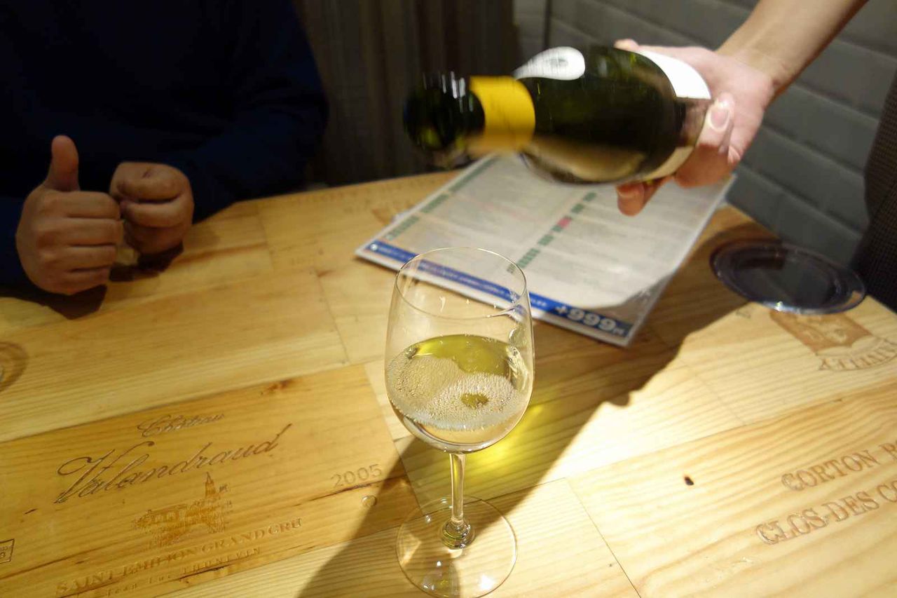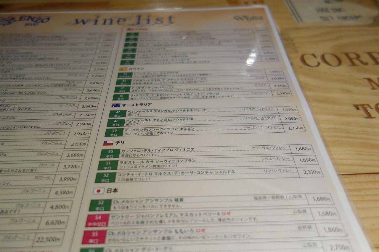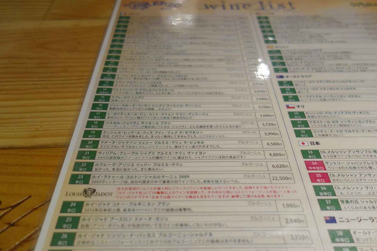 この日一緒に食事を食べる方がお店に入ってきたので,白ワインリストの8番の