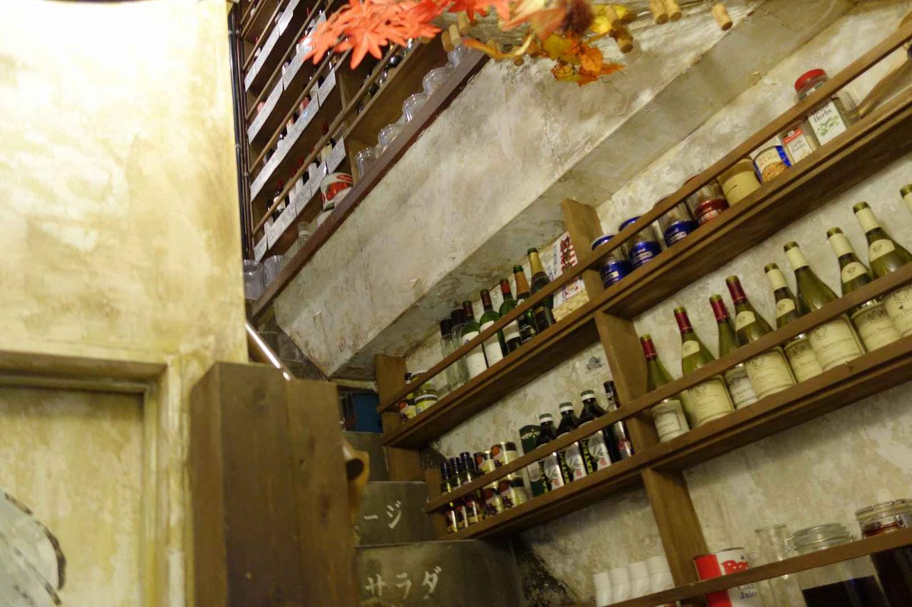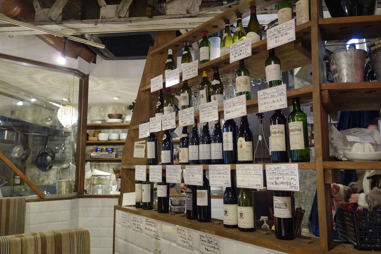 外には牡蠣殻と共にワインの空のビンが置かれており