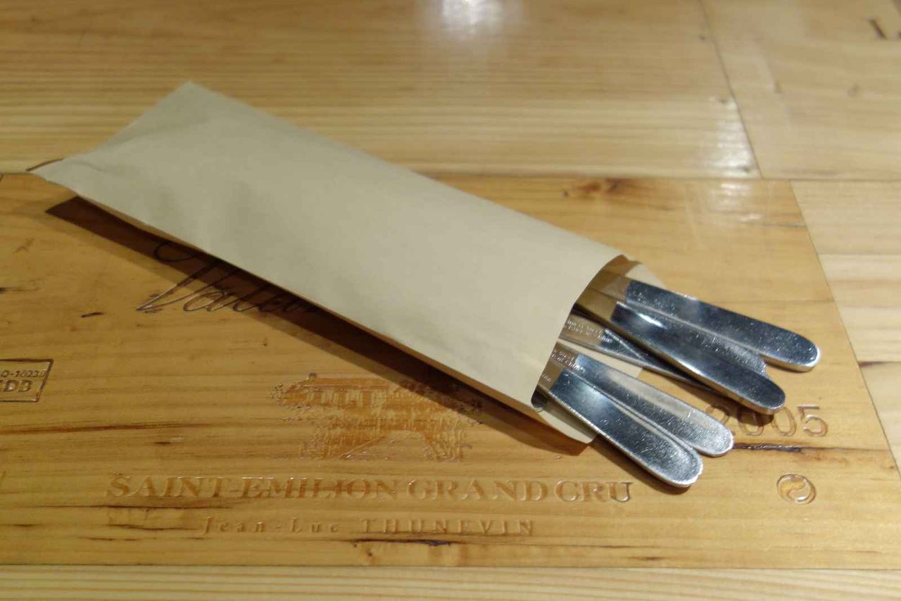 フォークやナイフが紙袋に収納してあるのが新鮮だなぁと思いつつ