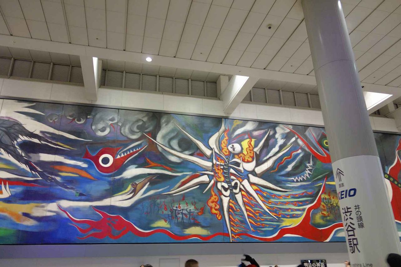 岡本太郎氏の作品である「明日の神話」と呼ばれる巨大な壁画が展示され