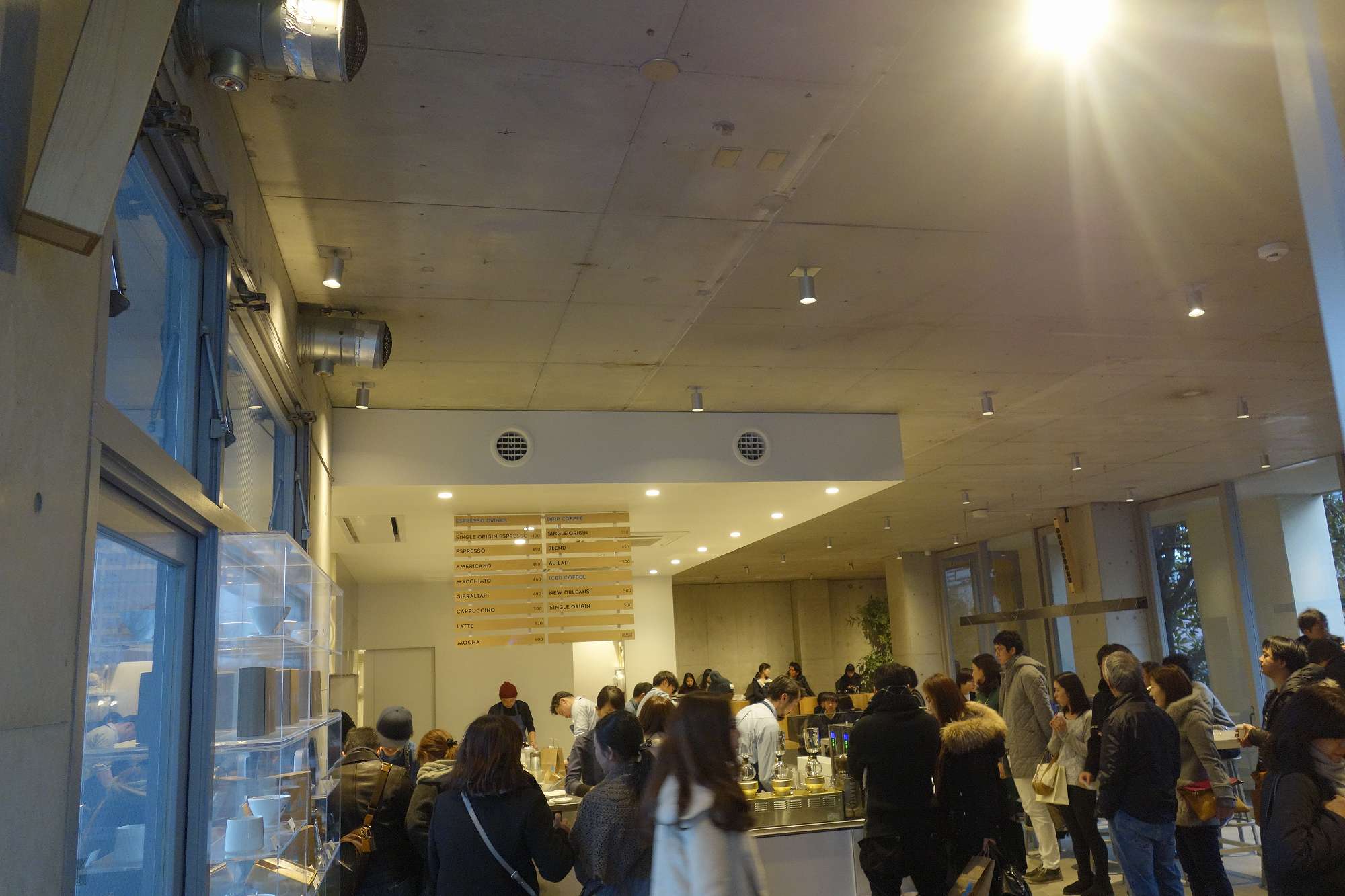 ブルーボトルコーヒー青山は、アパレルブランドのCABANE de ZUCCaのビルの2Fにあるお店で