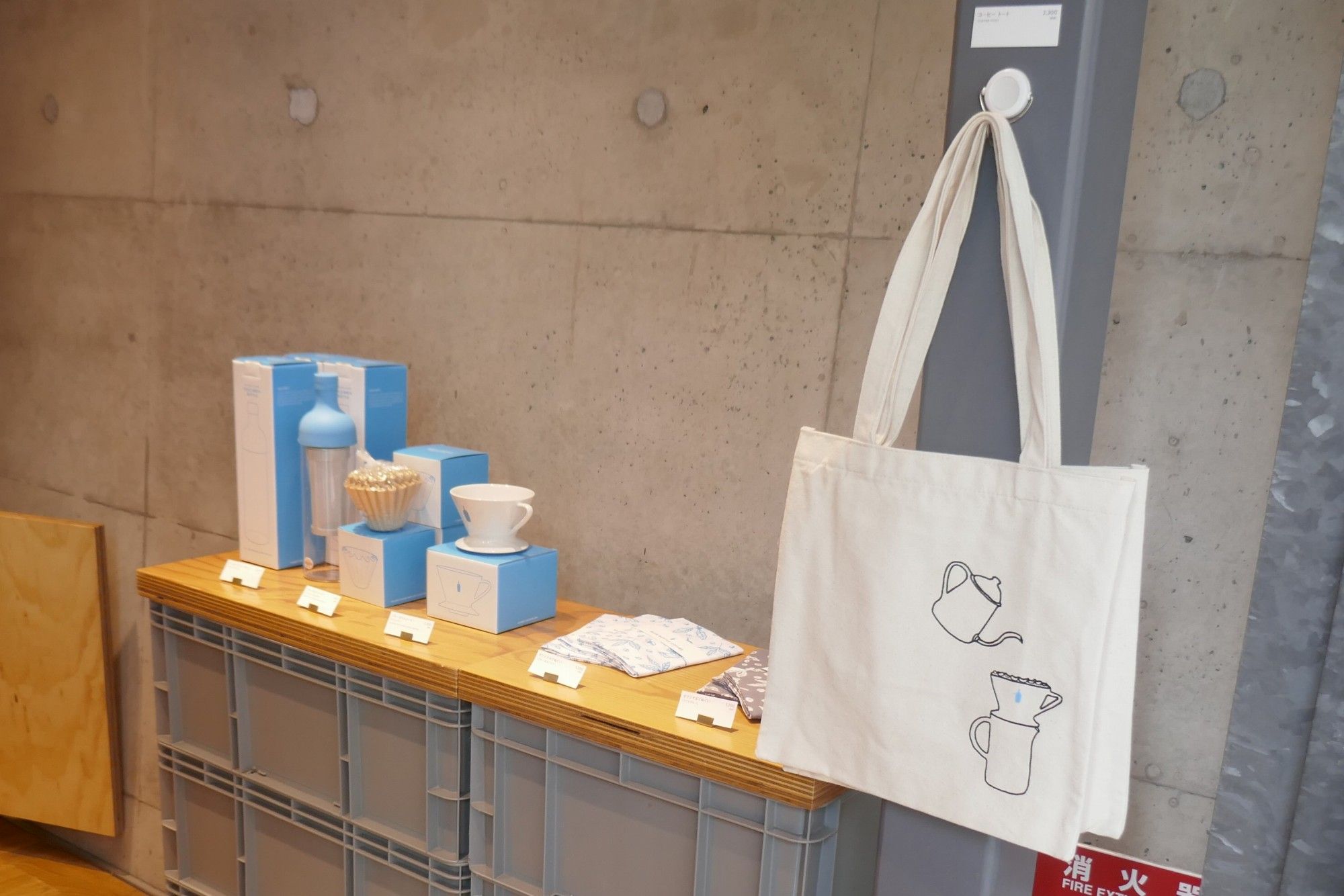 奥にはコーヒー豆や、缶コーヒー仕様の水出しコーヒーを用意。