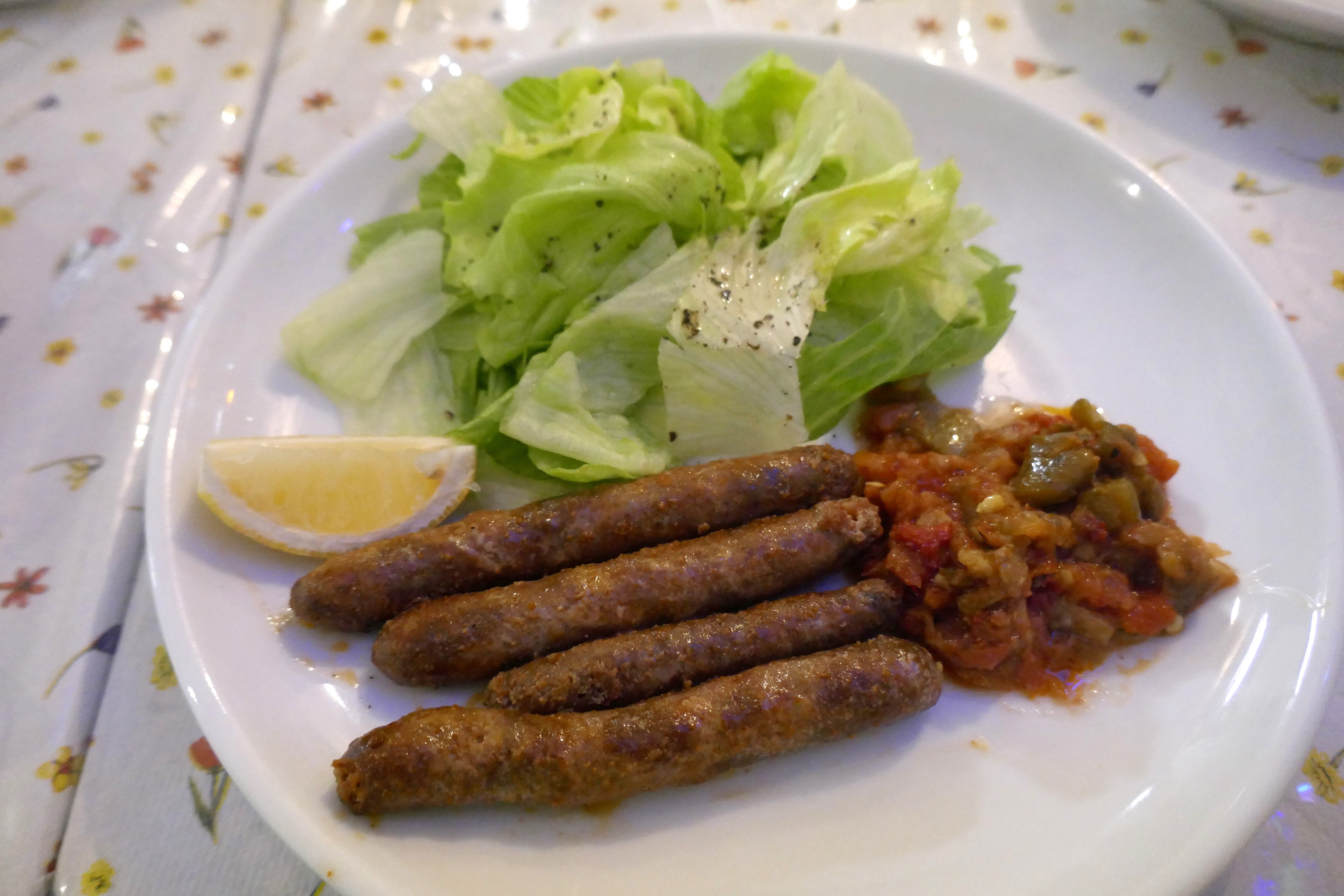 「メルゲース」1150円は、羊肉を使ったソーセージのような肉料理で