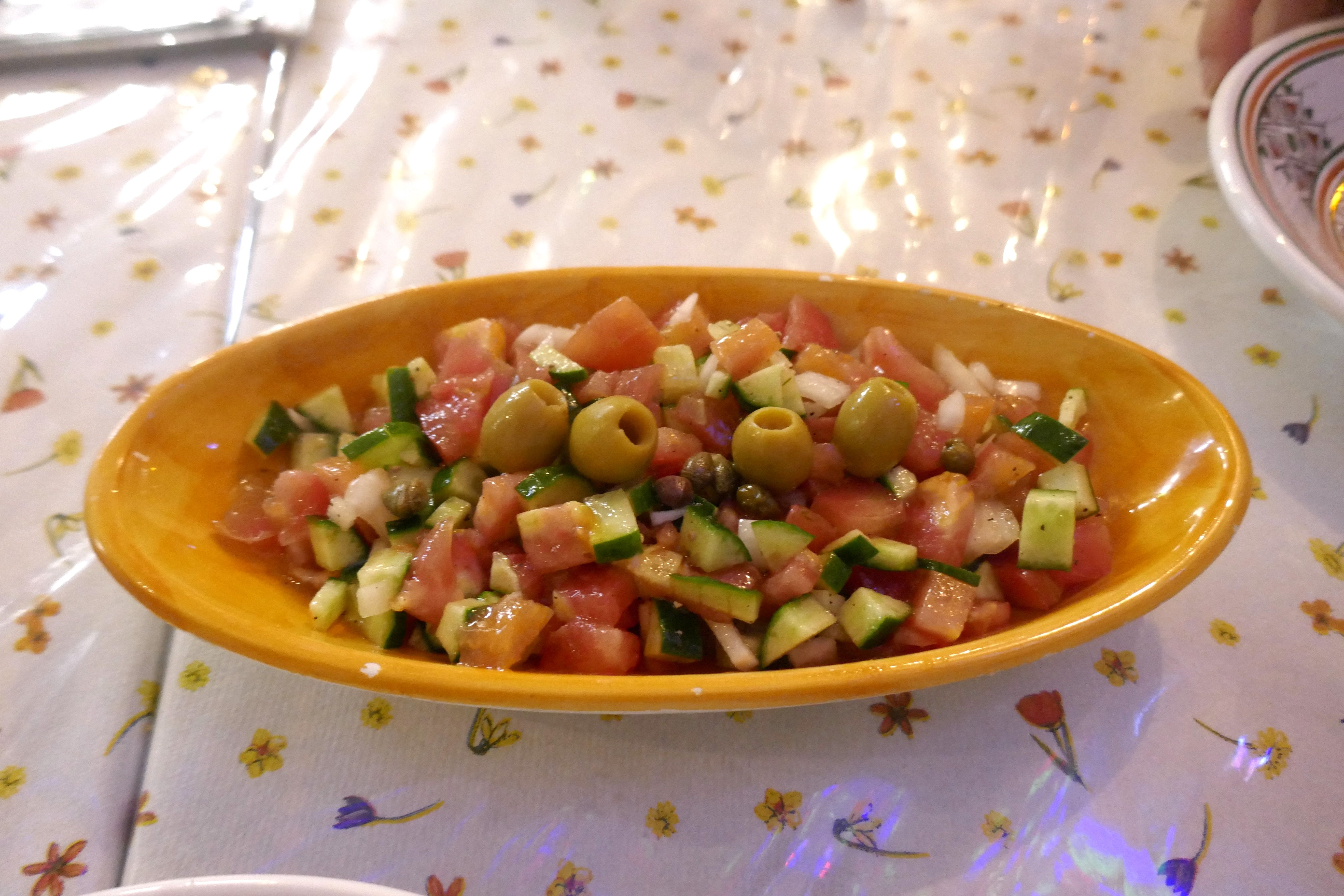 「サラダ・チュニジアン」は、トマト、きゅうり、オリーブなどが入り交じるサラダで、異国情緒あふれるウマさに感激!