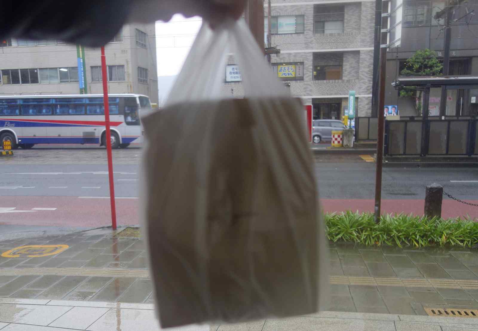 この日は雨が降っていたので紙袋の上にビニール袋を用意してもらい