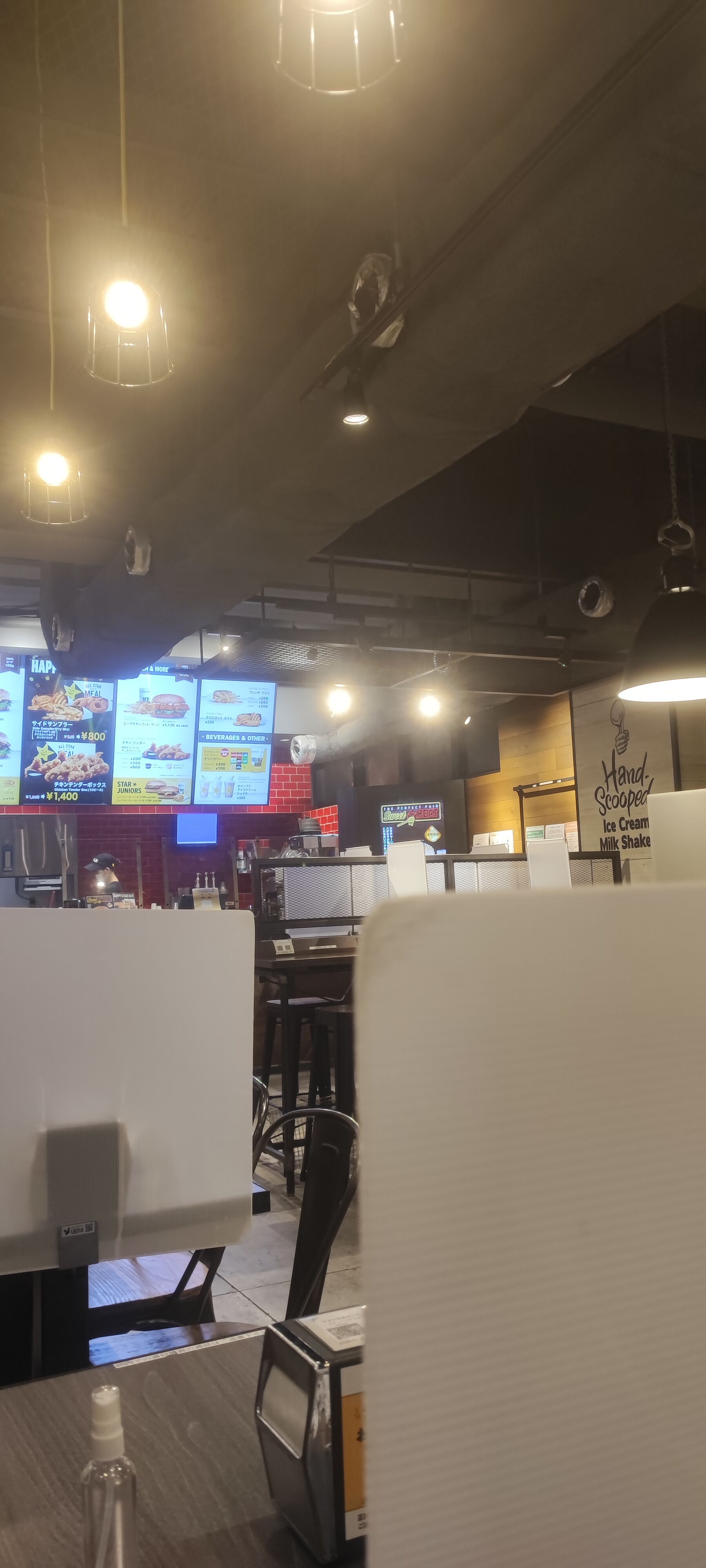 店内席は新型コロナ時代であることを反映し、席と席の合間にはプラスチック製の板が装備されています!