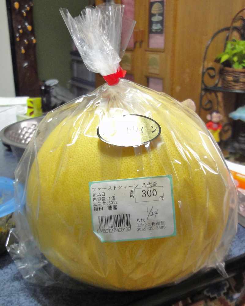 2009 2月 14 00:00:33 晩白柚(ばんぺいゆ)を食べました カテゴリ: 持ち帰り食 熊本県八代市 先日の記事で購入したとお伝えした、香りの良い晩白柚(ばんぺいゆ)を食べてみました。 タグ :#晩白柚#熊本県#柑橘類#世界最大#八代名産