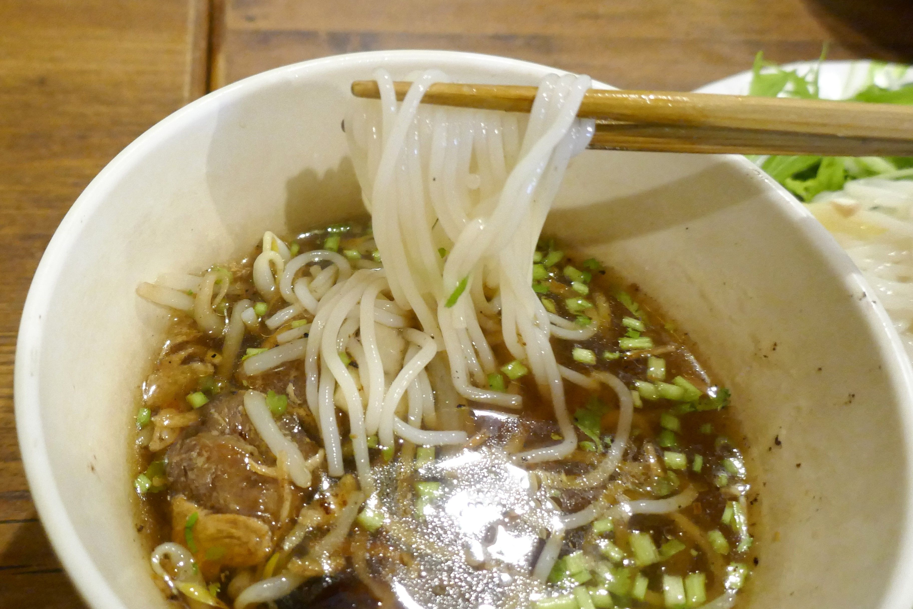 麺をタレにくぐらせて食べると、コシの強い米麺に酸味と塩気と旨味がこだまするタレの風味が馴染んでウマウマ!