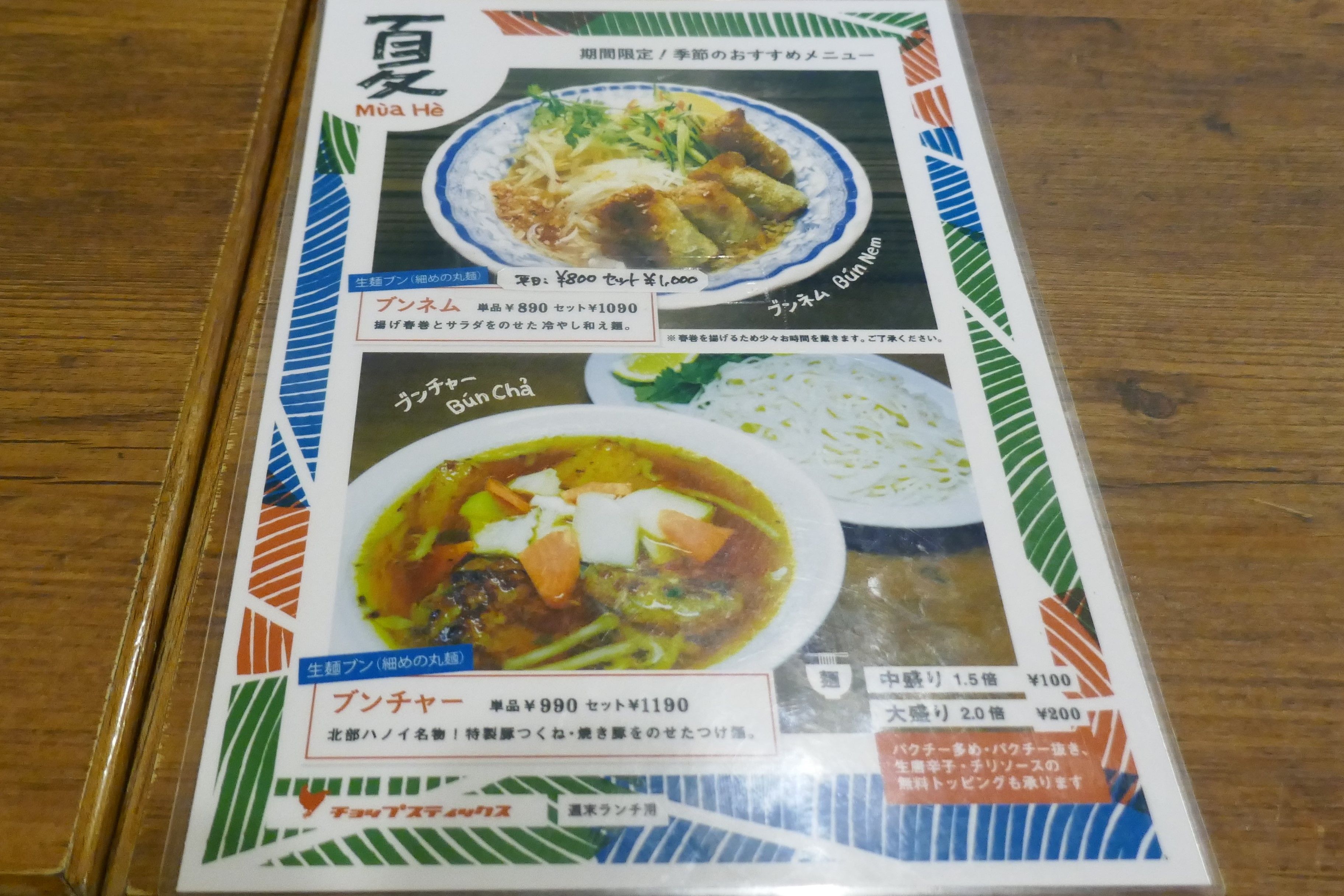 先日、久々に「チャップスティックス」へ。この日のメニューはブンネム、ブンチャー