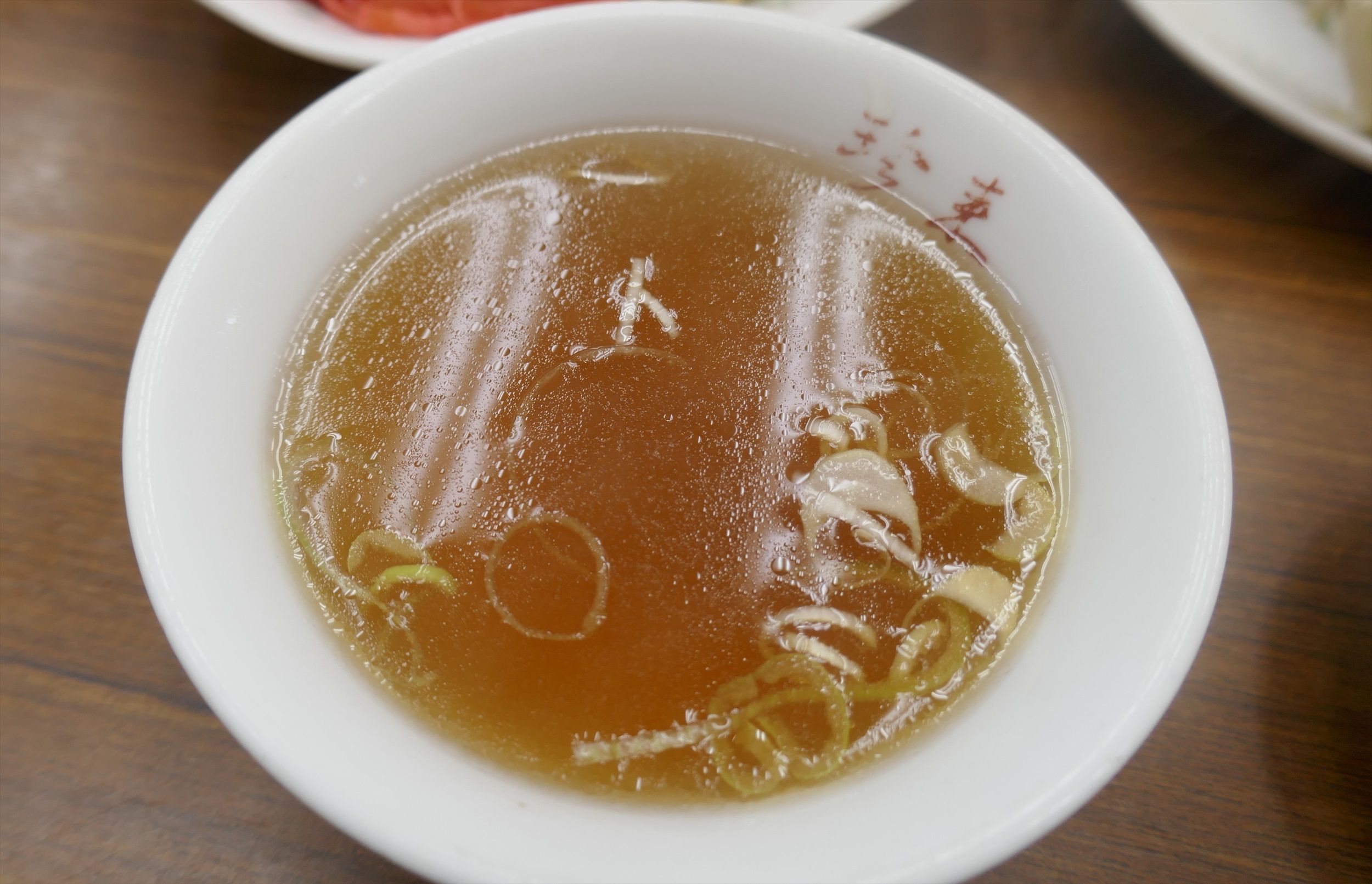 「炒飯」に添えられていたスープは醤油ラーメンのような味わいかと思いきや