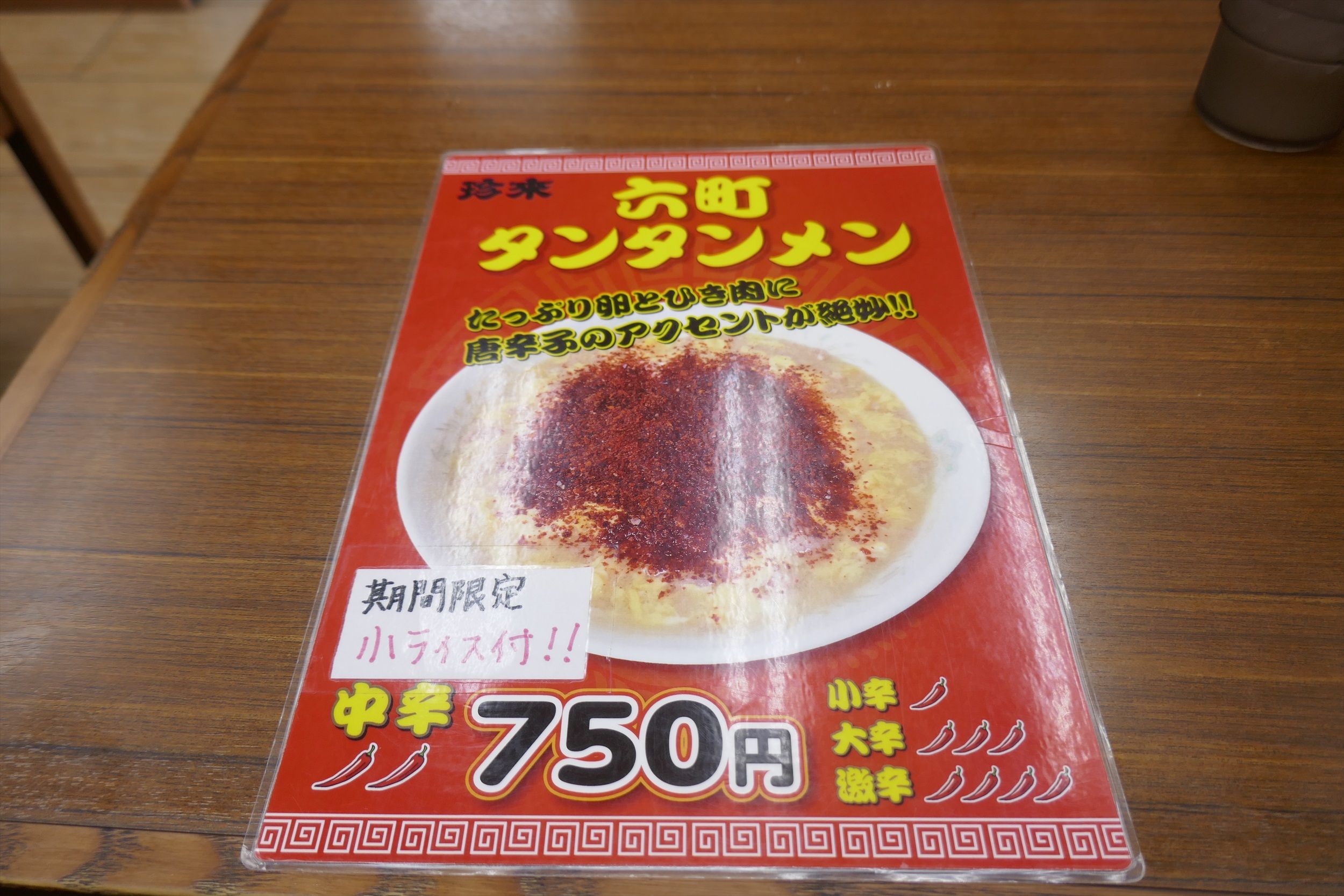 珍来といえば茨城県や千葉県などに多く展開している中華レストランで、何と六町店には限定メニューの「六町タンタンメン」750円があるもよう!