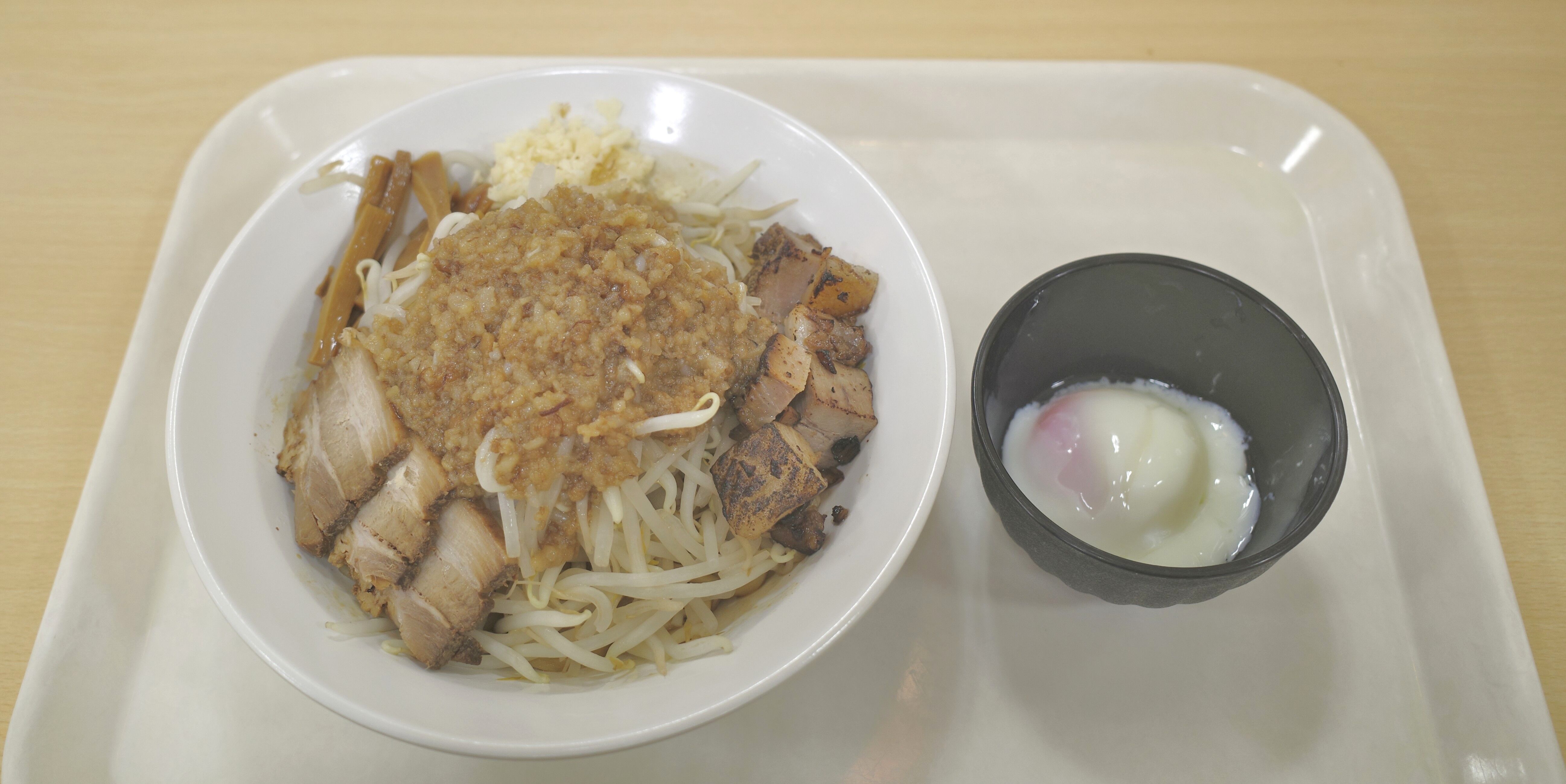 たまに行くならこんな店 福島駅北側のダイユーエイトMAX福島店内にある「中華そば 傑心」で、味濃いめ、旨味濃いめなタレが麺と具にマッチして激ウマな「傑心のまぜそば」を食す!