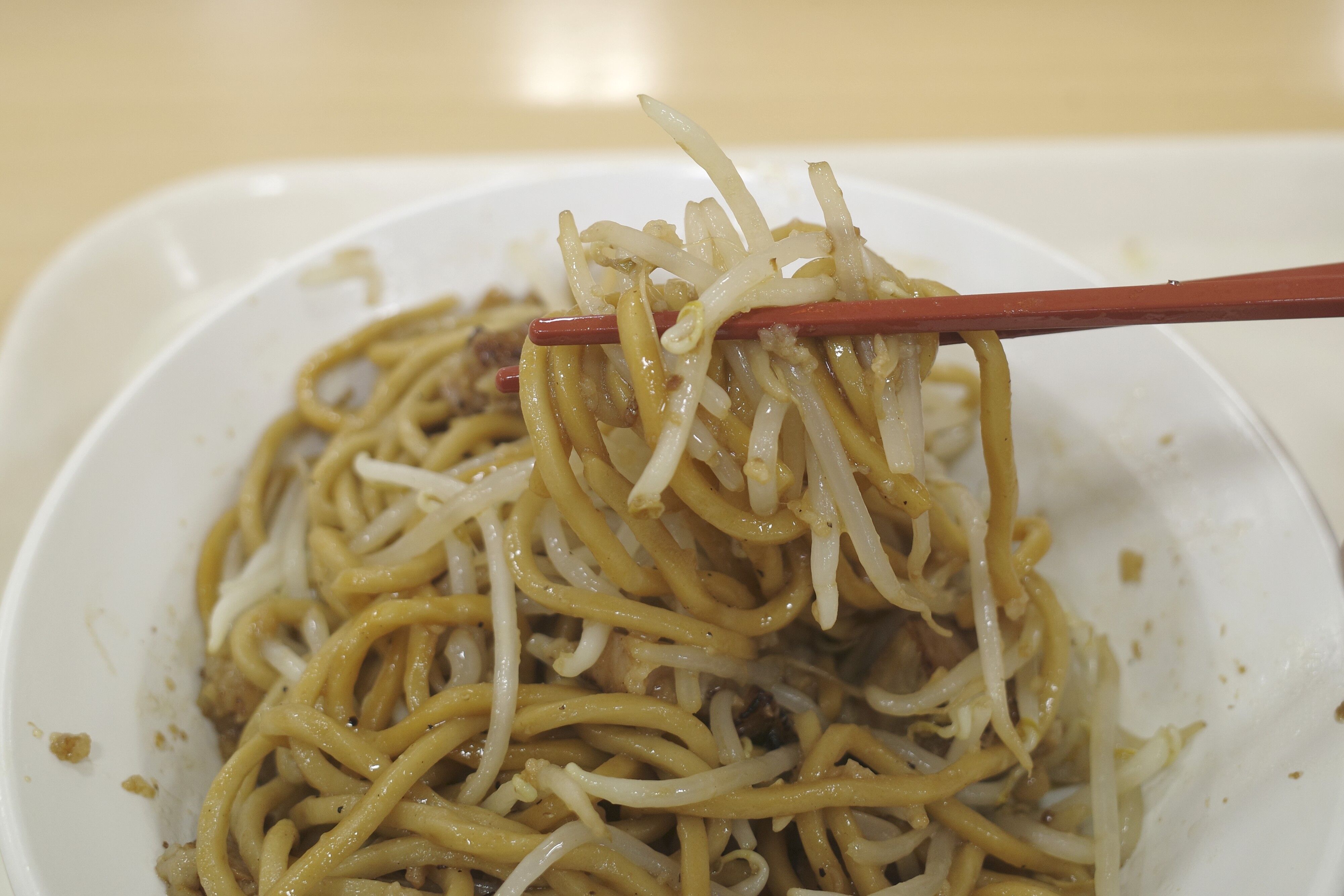 麺にもやしをまとわせることでもやしの水分が麺に馴染んで後味キリリ!