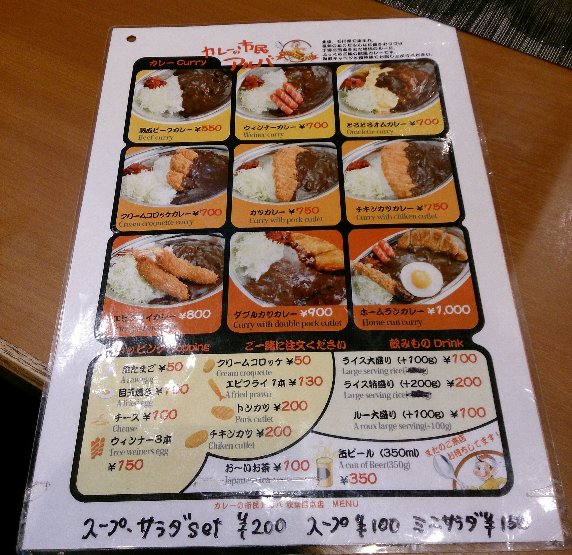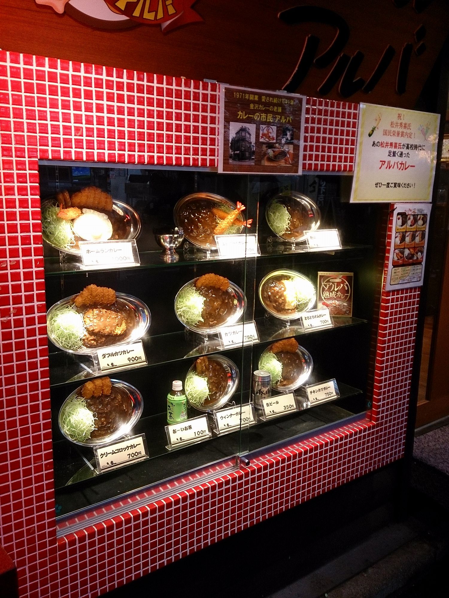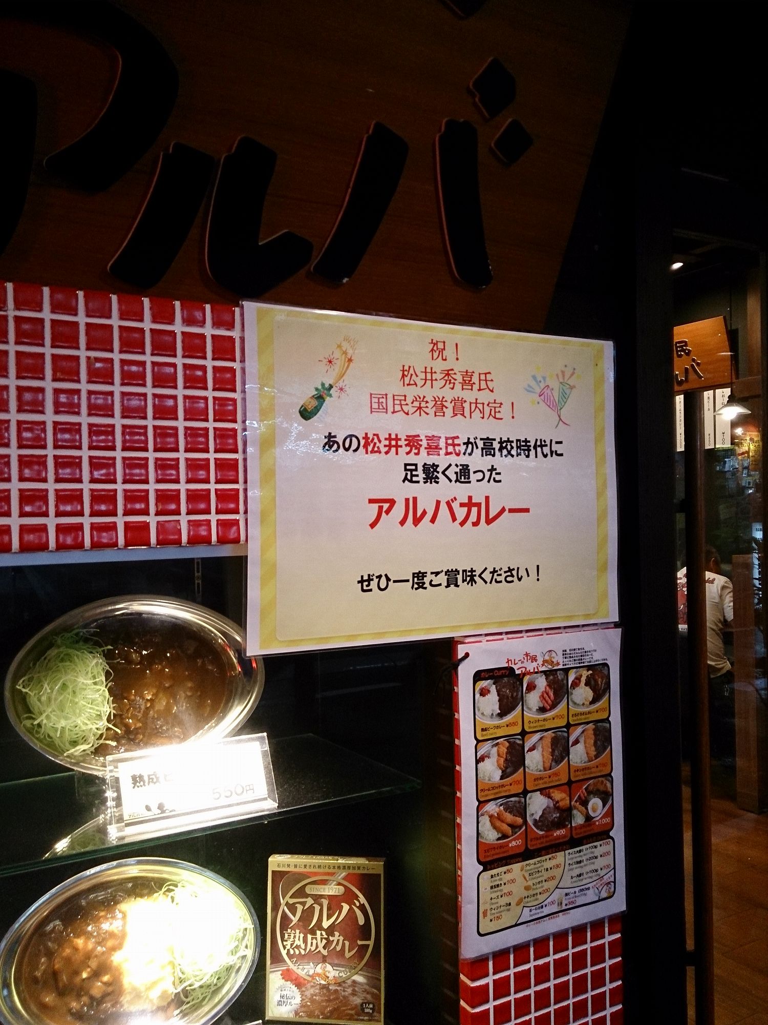 金沢系カレーと言えば色々な所で見かけるゴーゴーカレーが有名ですが、ここアルバカレーも金沢系カレーのお店で、あの松井秀喜氏が高校生時に通ったお店がアルバカレーとのことです。