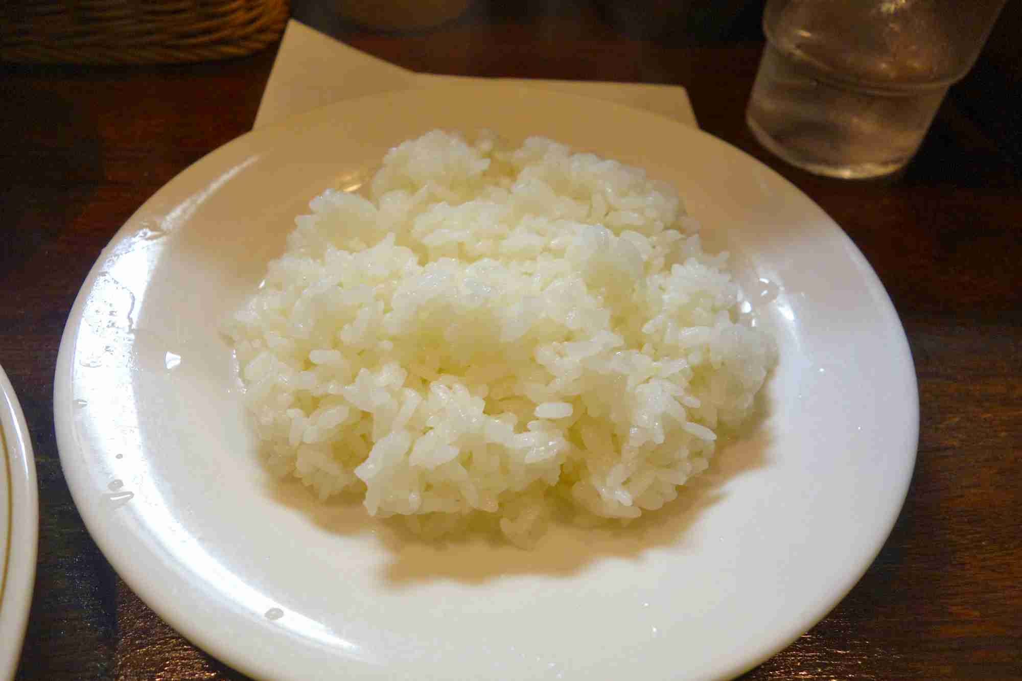 ハリのある炊きあがりのご飯も平皿に盛られております。