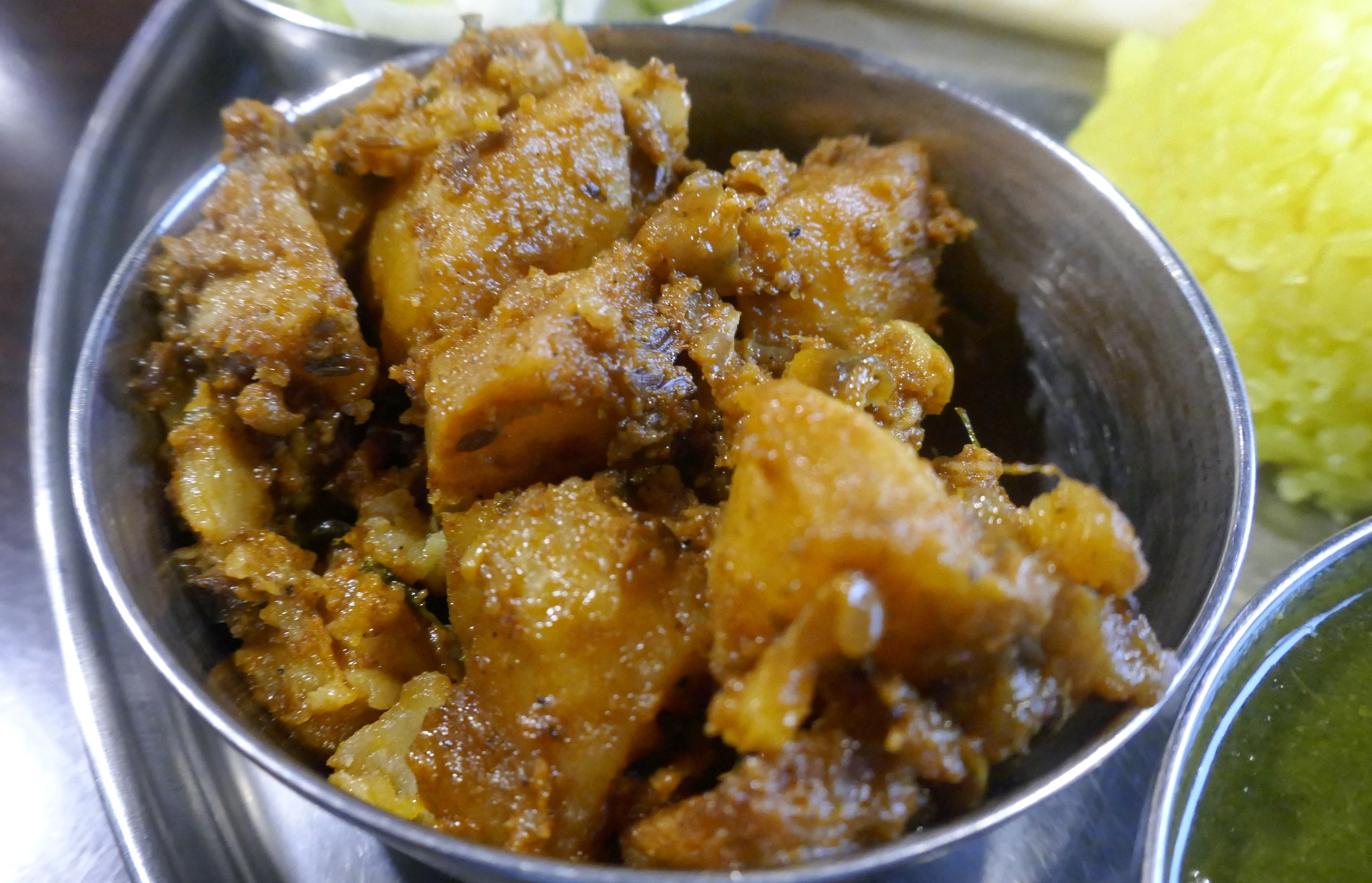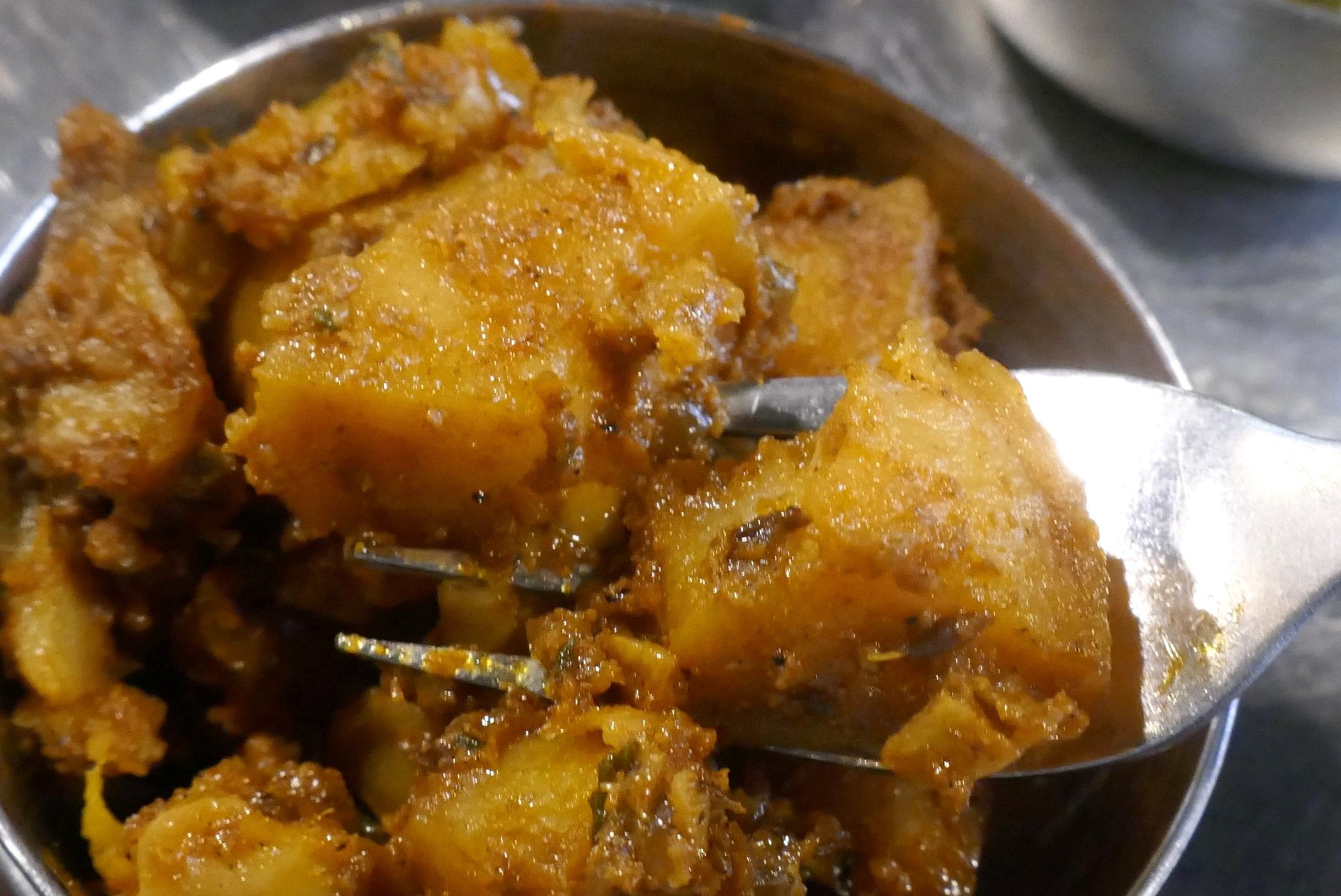 最後に食べた「クミンじゃがいも」は、アツアツホクホクなじゃがいもにほどよい塩気、オリエンタルな風味満点なクミンの風味が効いてナンとの相性もバッチリ!