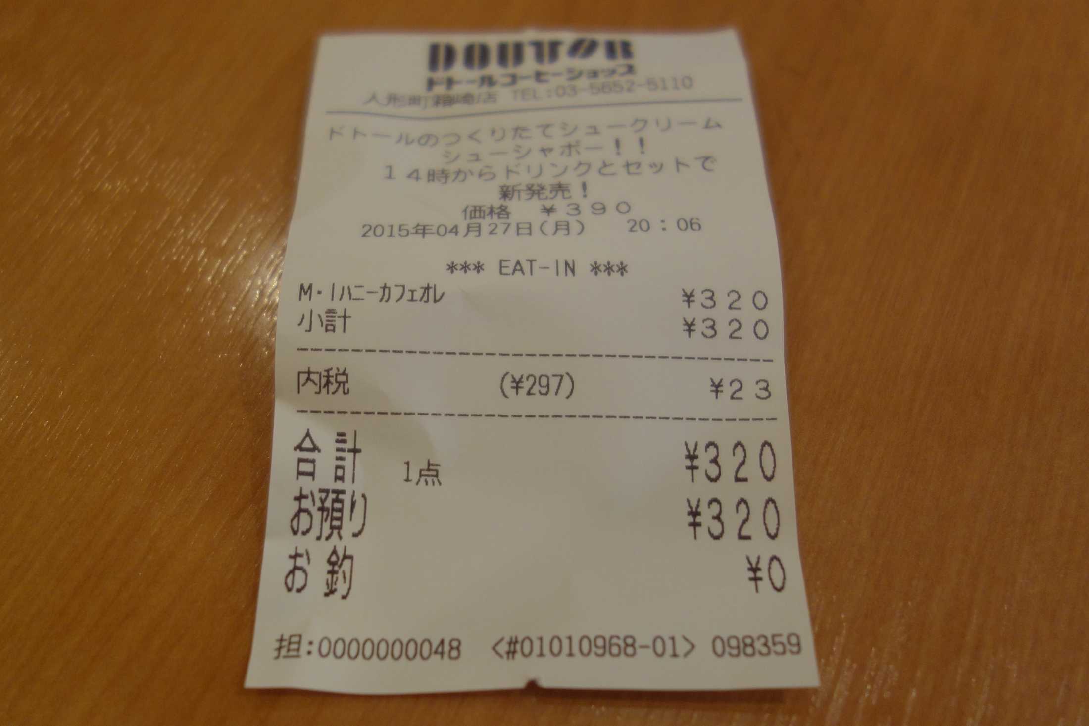 サクッとドトールコーヒーショップ人形町箱崎店へと突入します。