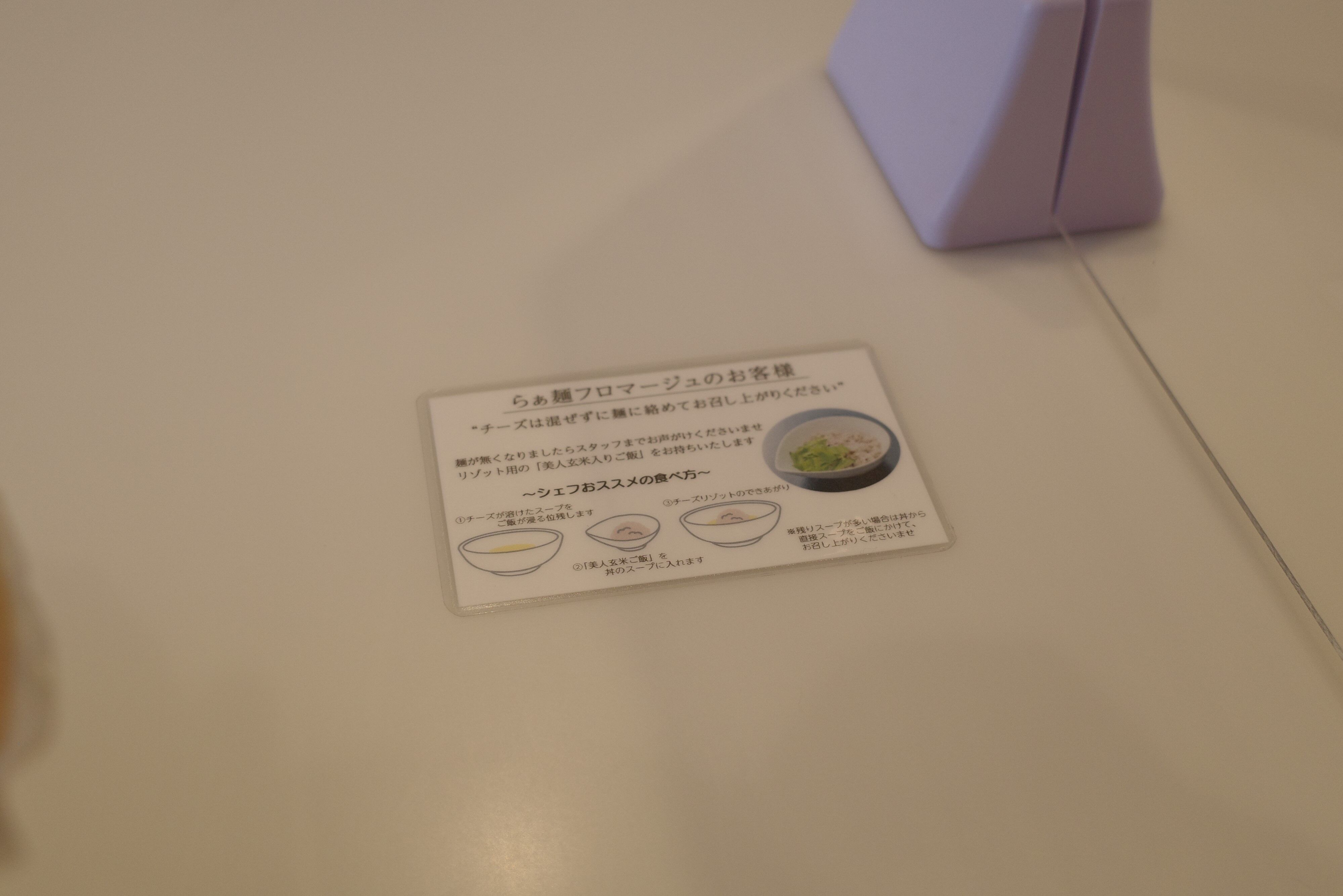 メニューは色々とありますが、「らぁ麺生ハムフロマージュ」1180円をオーダーしてみることに。