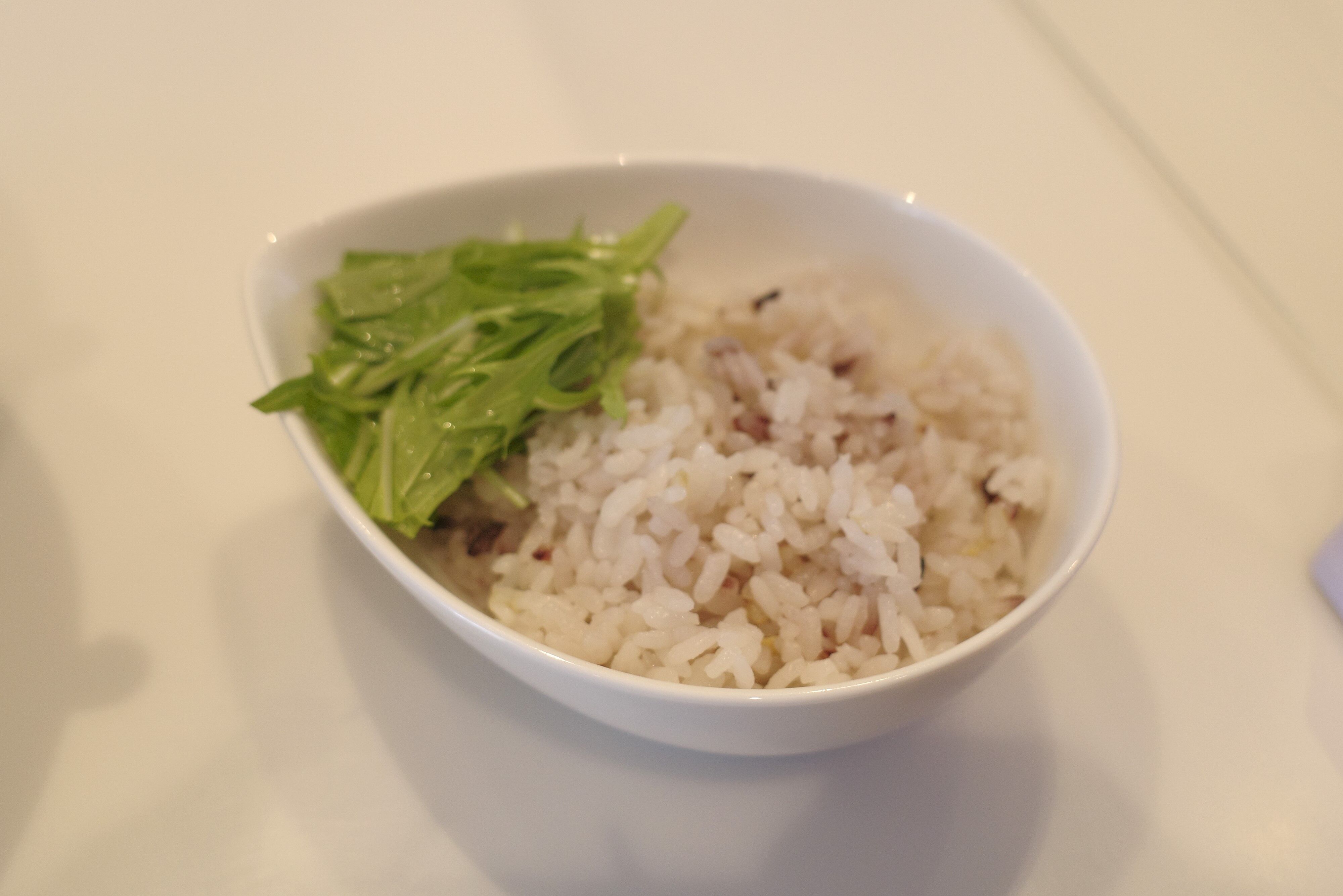 ほどなくし、水菜を添えたリゾット用のご飯が登場!
