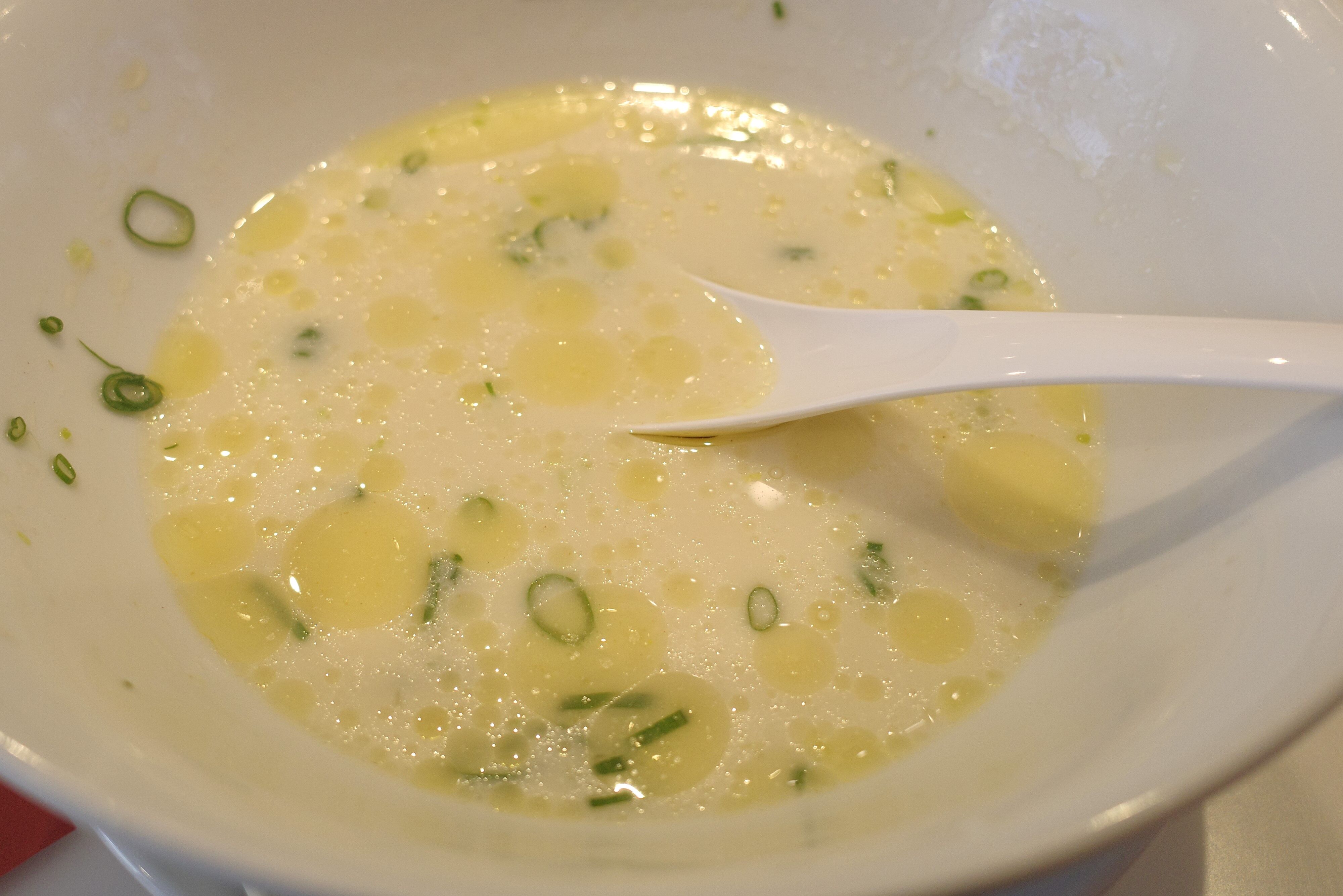 スープの中に具や麺がなくなったタイミングでリゾット用のご飯をオーダー(無料)。