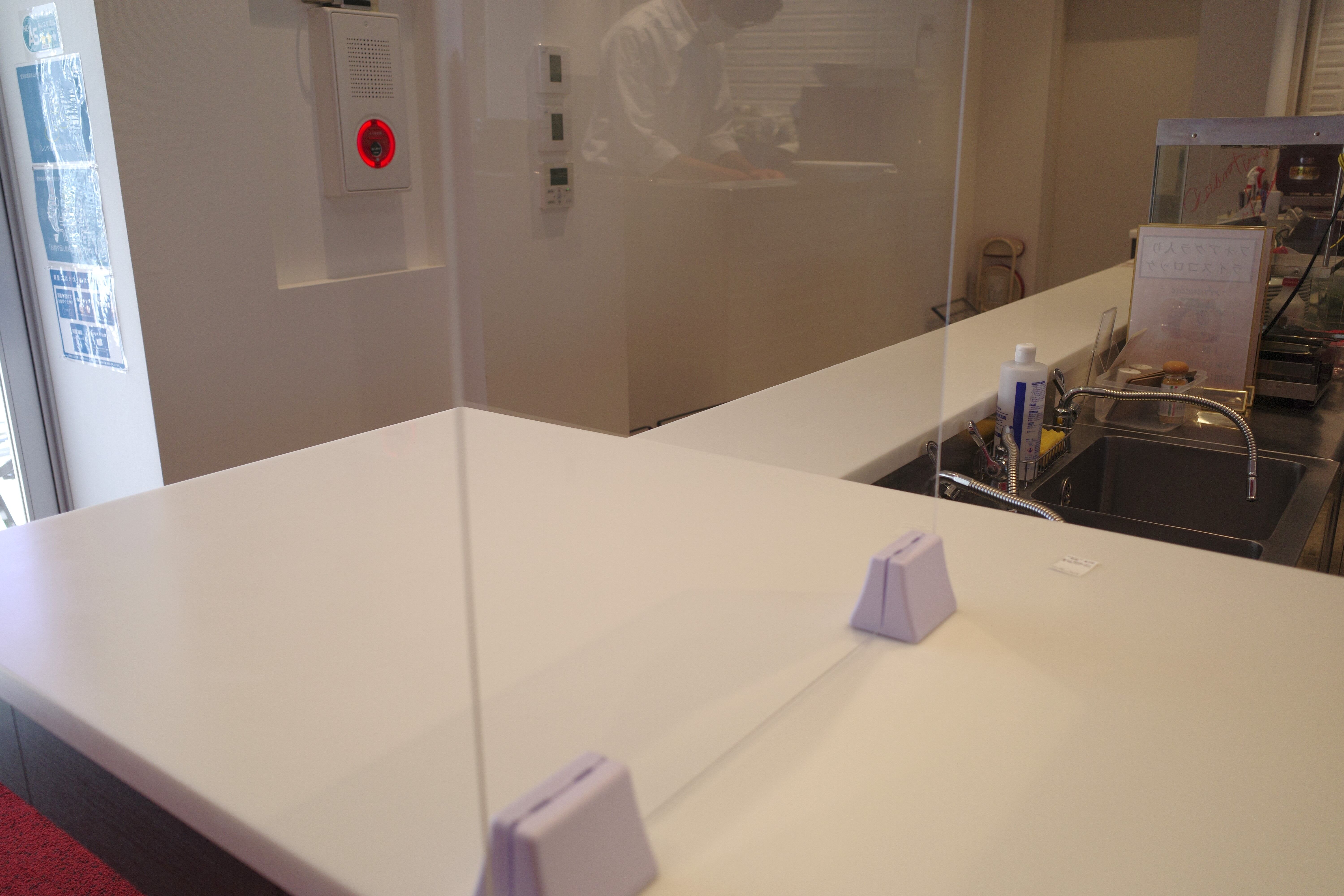 新型コロナ時代なので席には飛沫拡散防止様のアクリル板も配備!