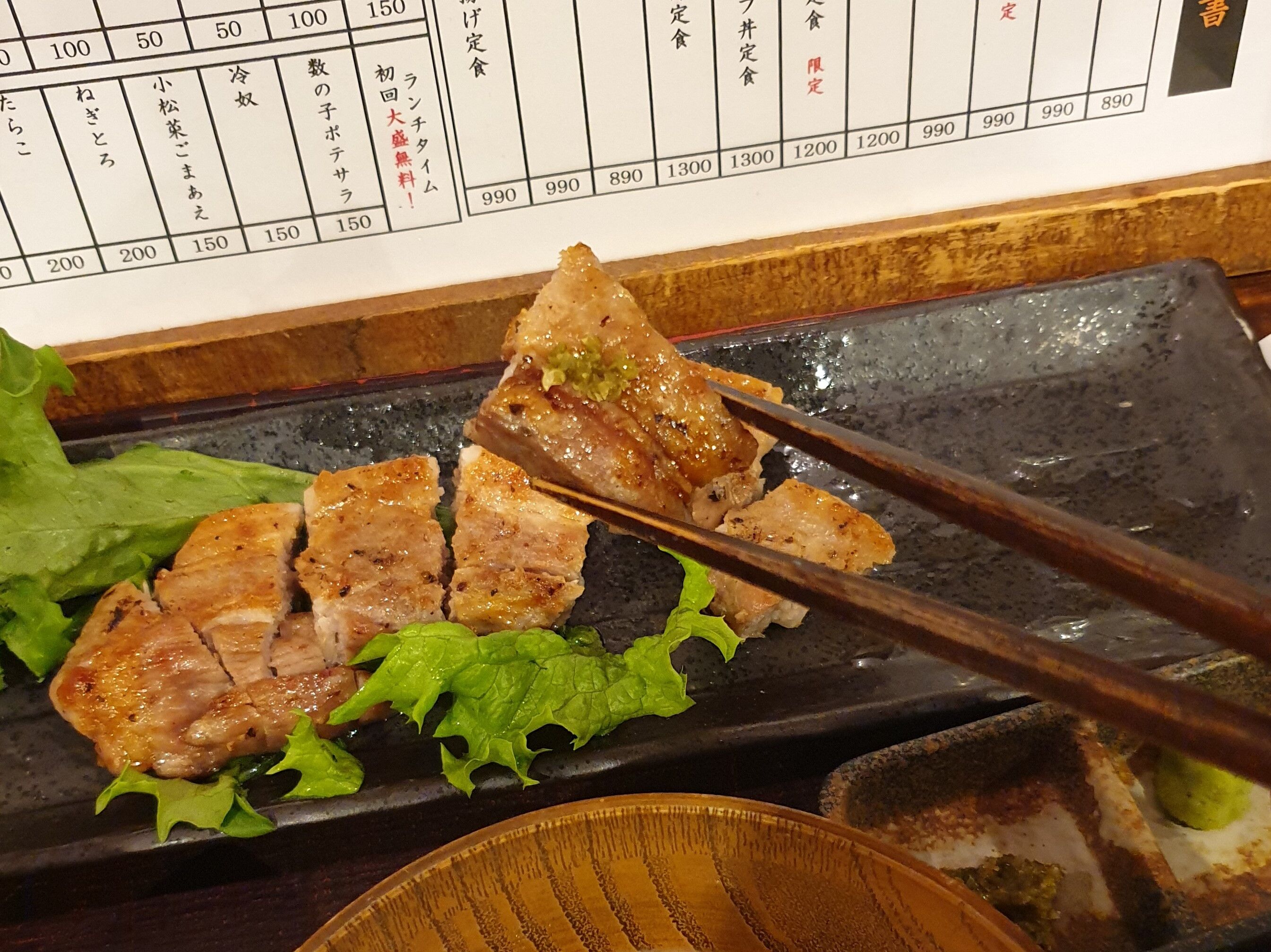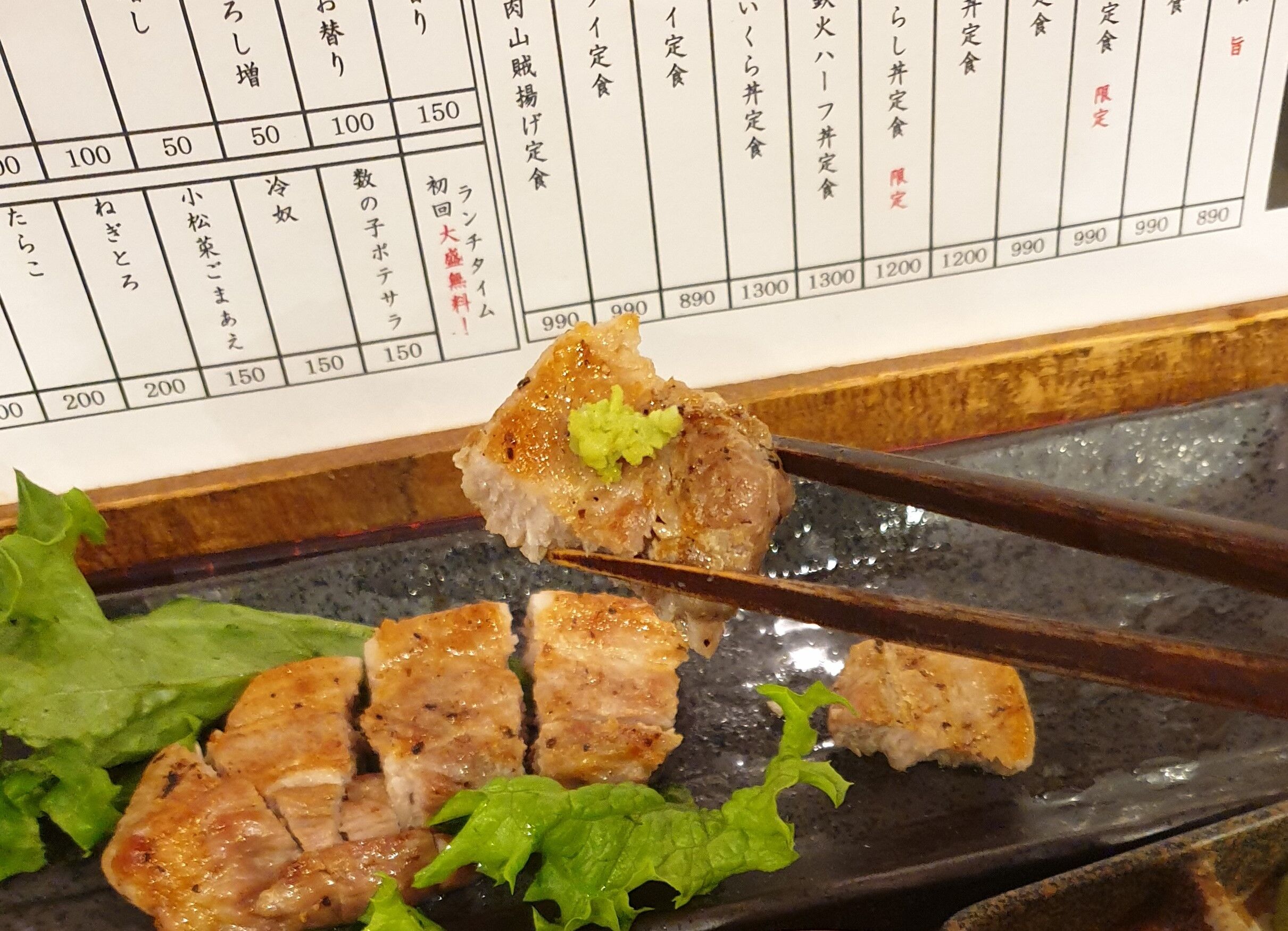 わさびを添えると肉肉しい旨味はそのままに、辛味と甘味が融合したわさびがお肉全体に馴染んで脂身由来の風味のクドさが解消!スルスルと食が進みます!