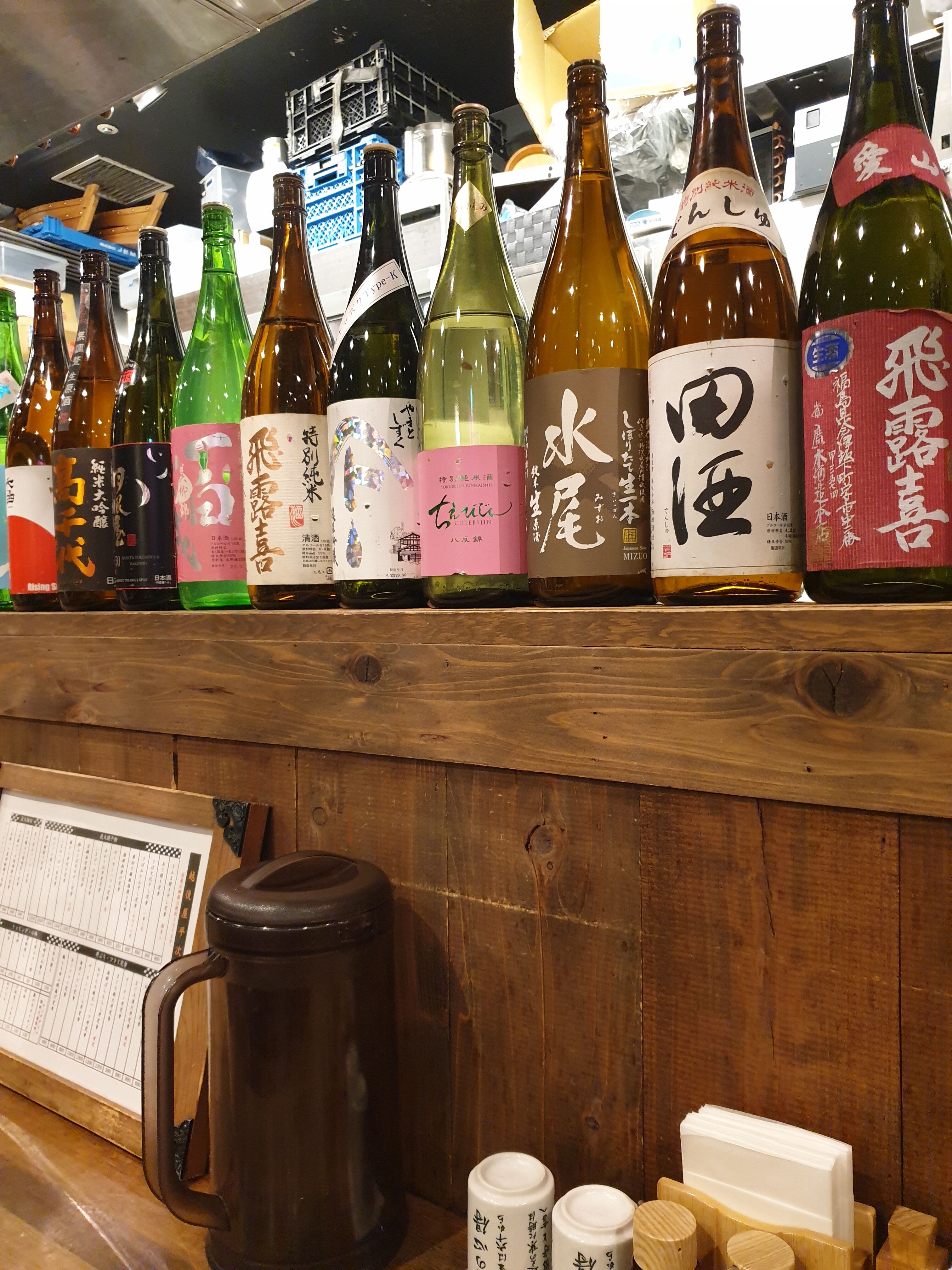 カウンターの間仕切りに日本酒がたっぷりあるのは飲兵衛さんにとっては目に毒かも知れません!