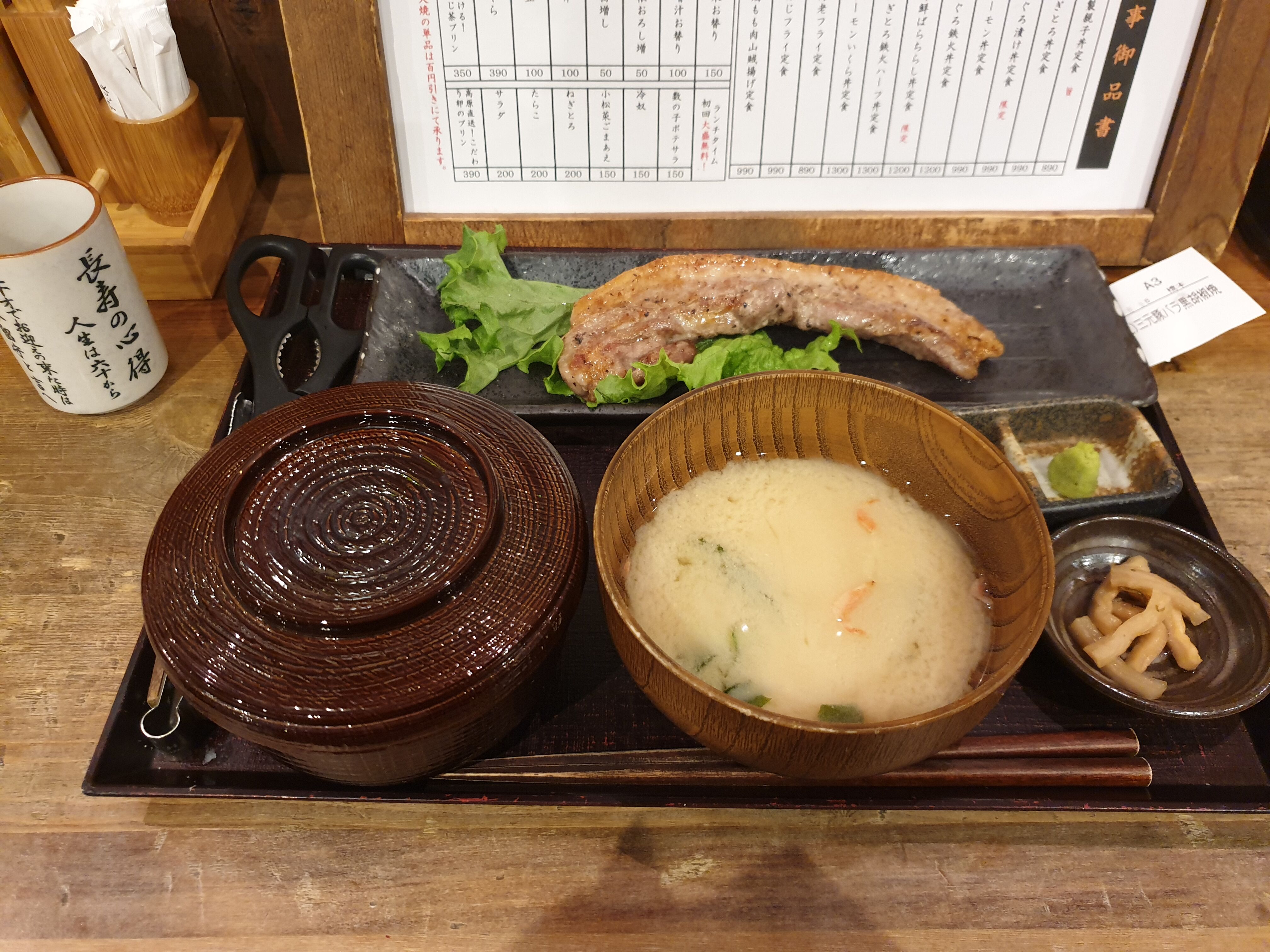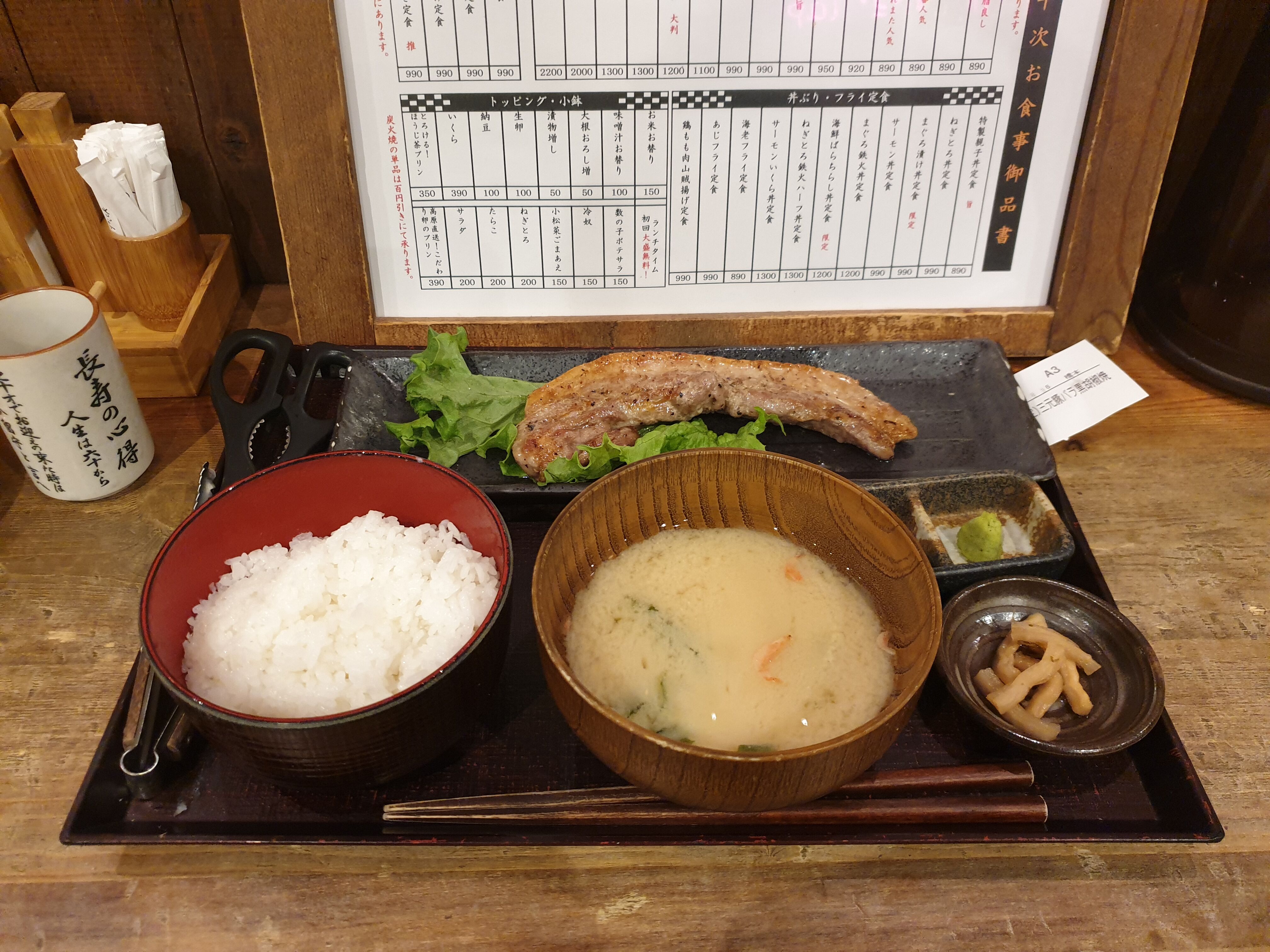 この日は「三元豚バラ黒胡椒焼き定食」990円を食べてみることに。