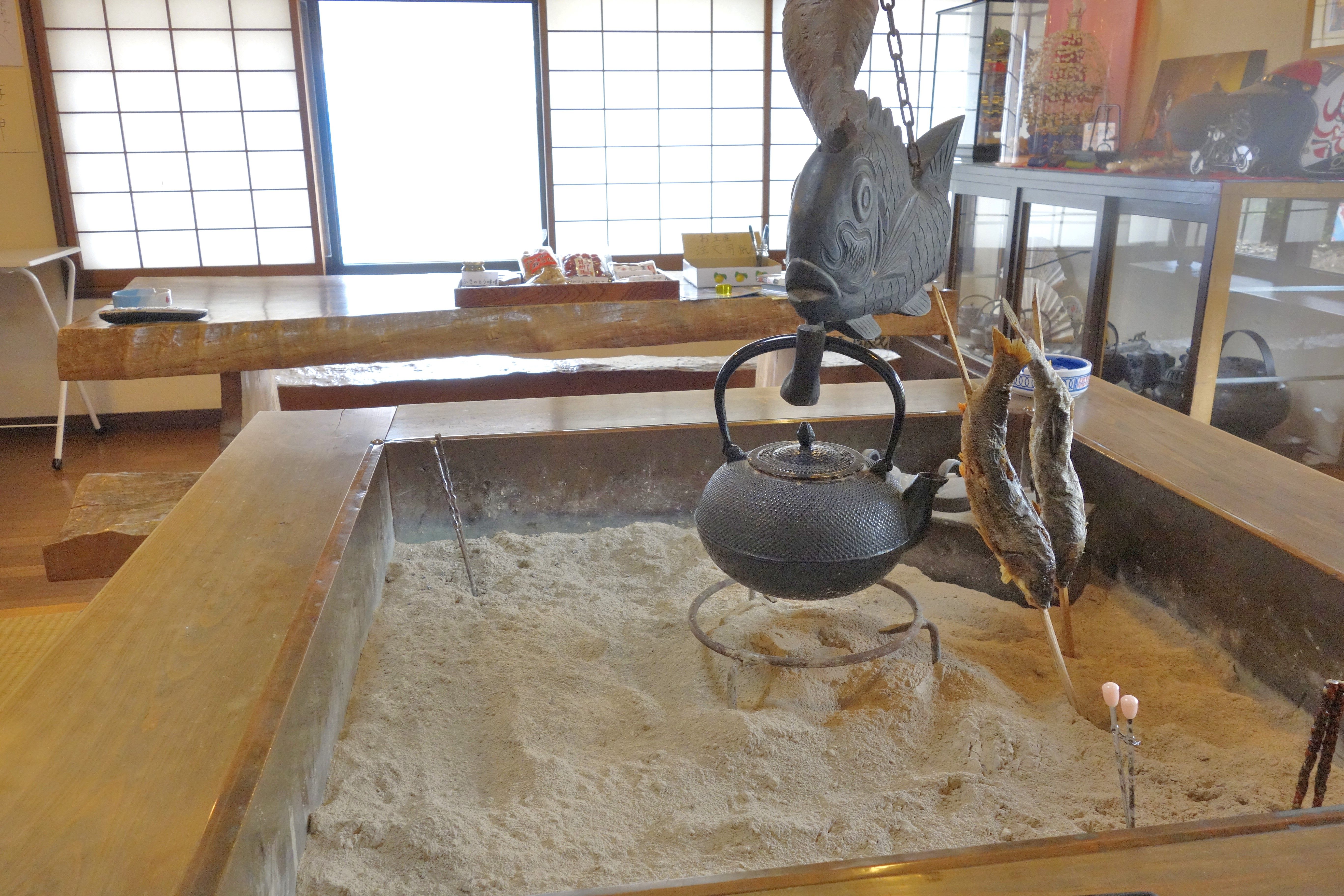 今回は囲炉裏前の席へと移動。