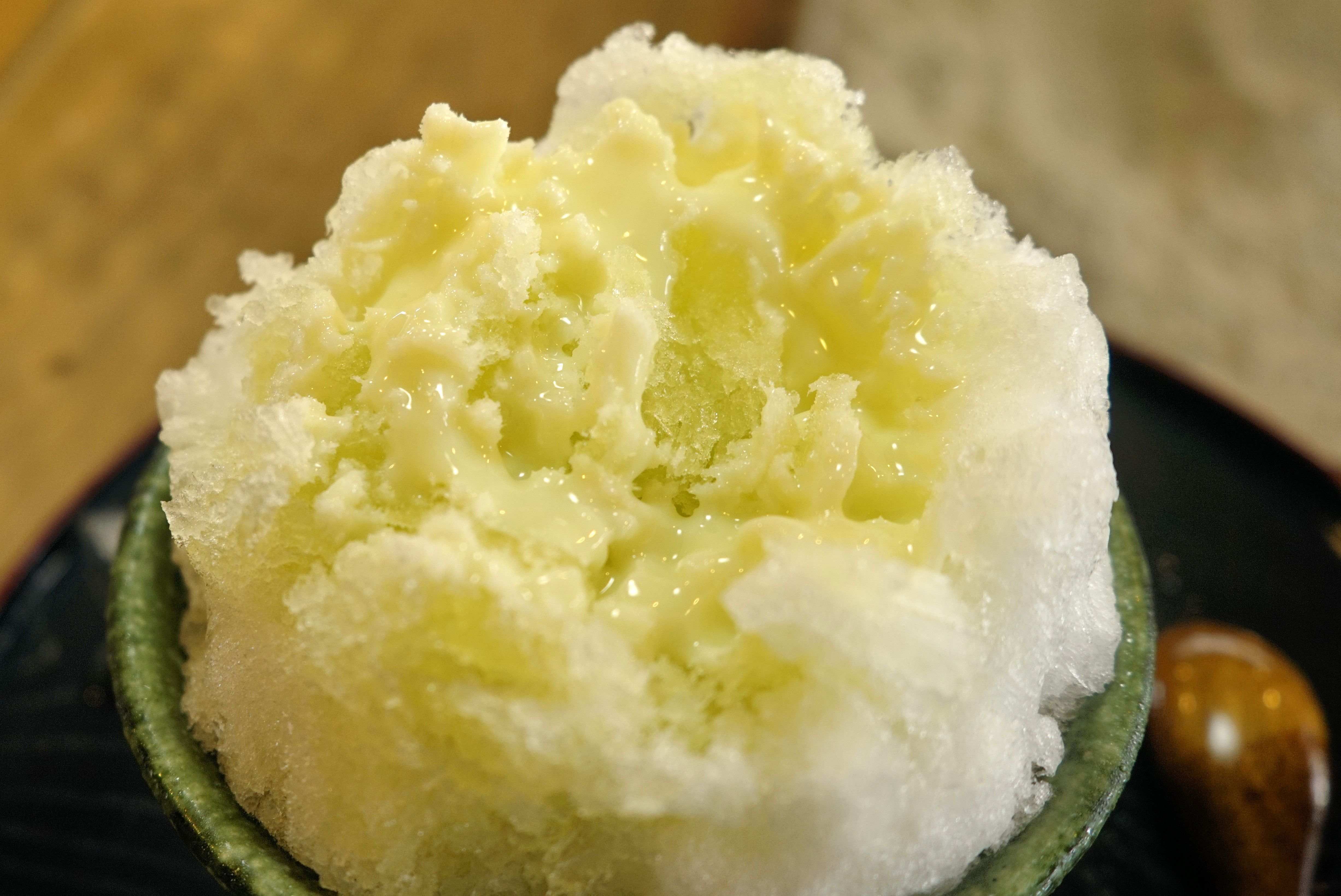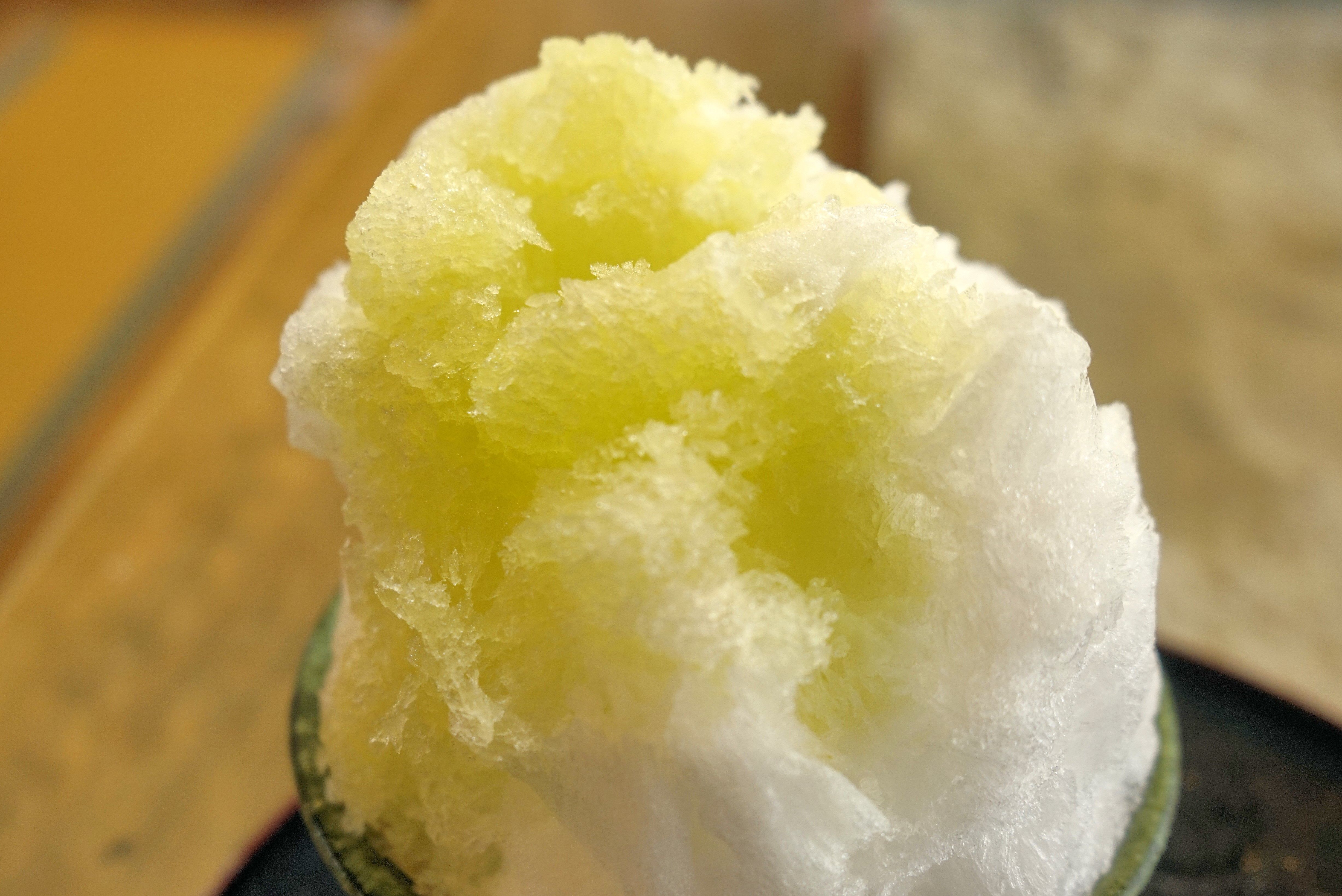早速、スプーンでシロップにまみれたかき氷を掬って食べてみると、天然氷ほどの口溶けの良さはないものの、天然水を使った氷ならではの風味が強く感じられる上に、爽やかな酸味と程よい甘みが効いたカボスシロップの風味が効いてウマウマ!