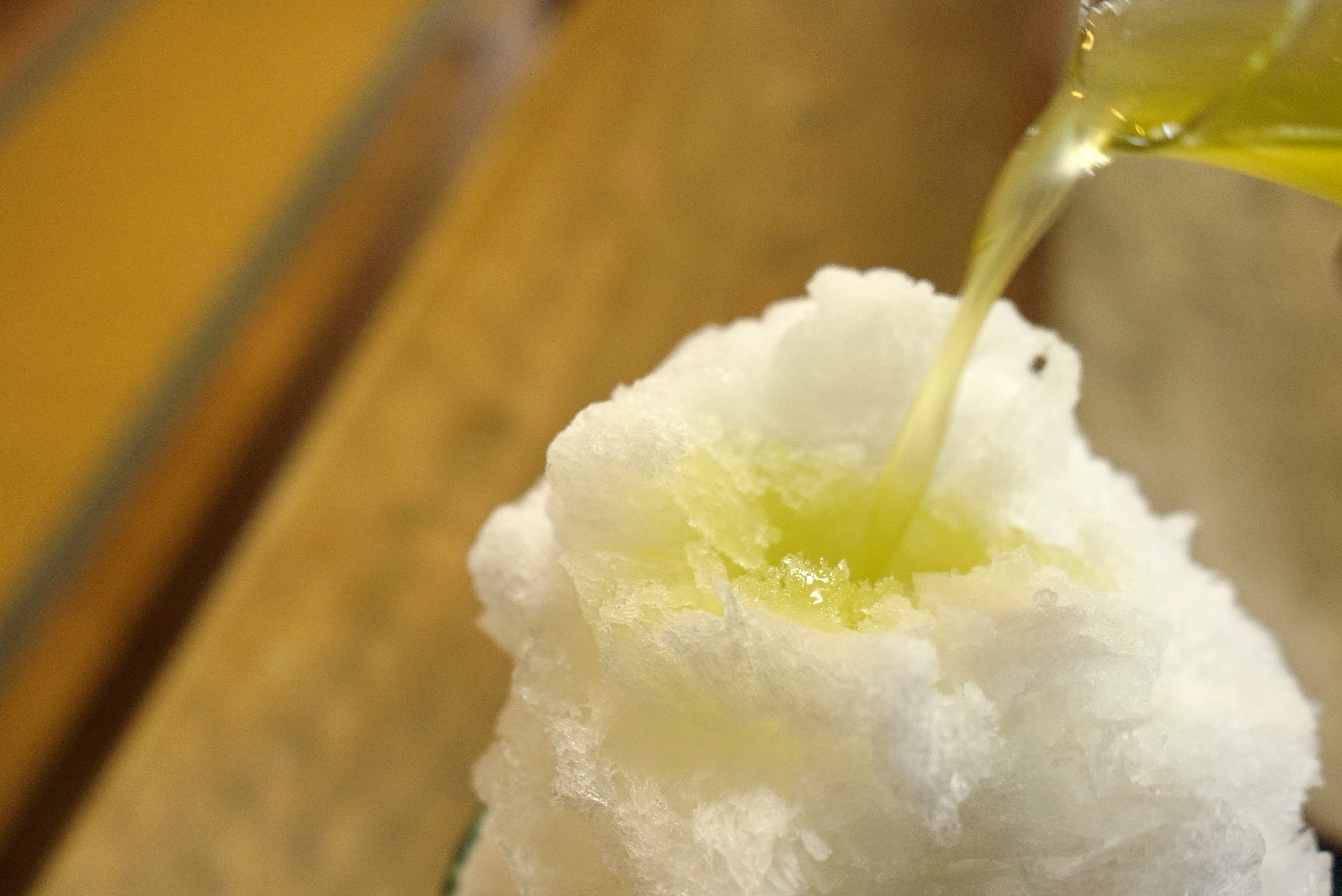 一通りカボスシロップを氷の上にかけ終わったタイミングでストップ!