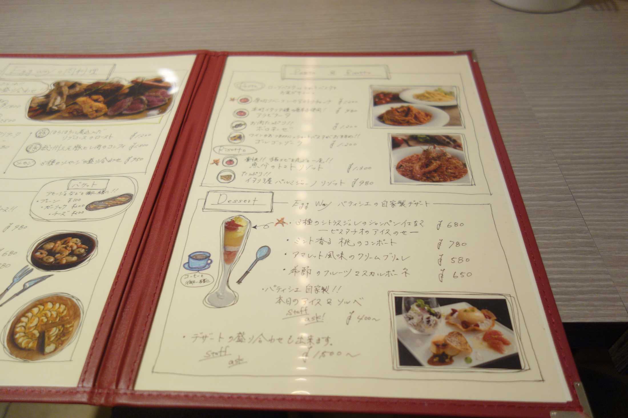 エッグウェイの特徴は何と言ってもオシャンティで広々とした内装が特徴でありますが、所々に他のお客様もいたので、フロア内にカメラは向けずにメニュー表を見ていくと