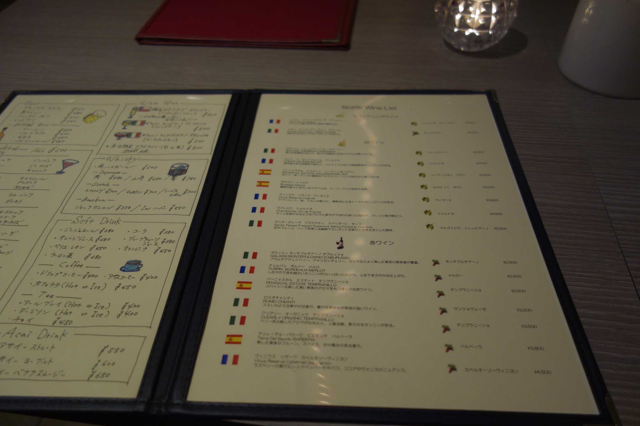 各種ボトルワインでメニューは以上です。
