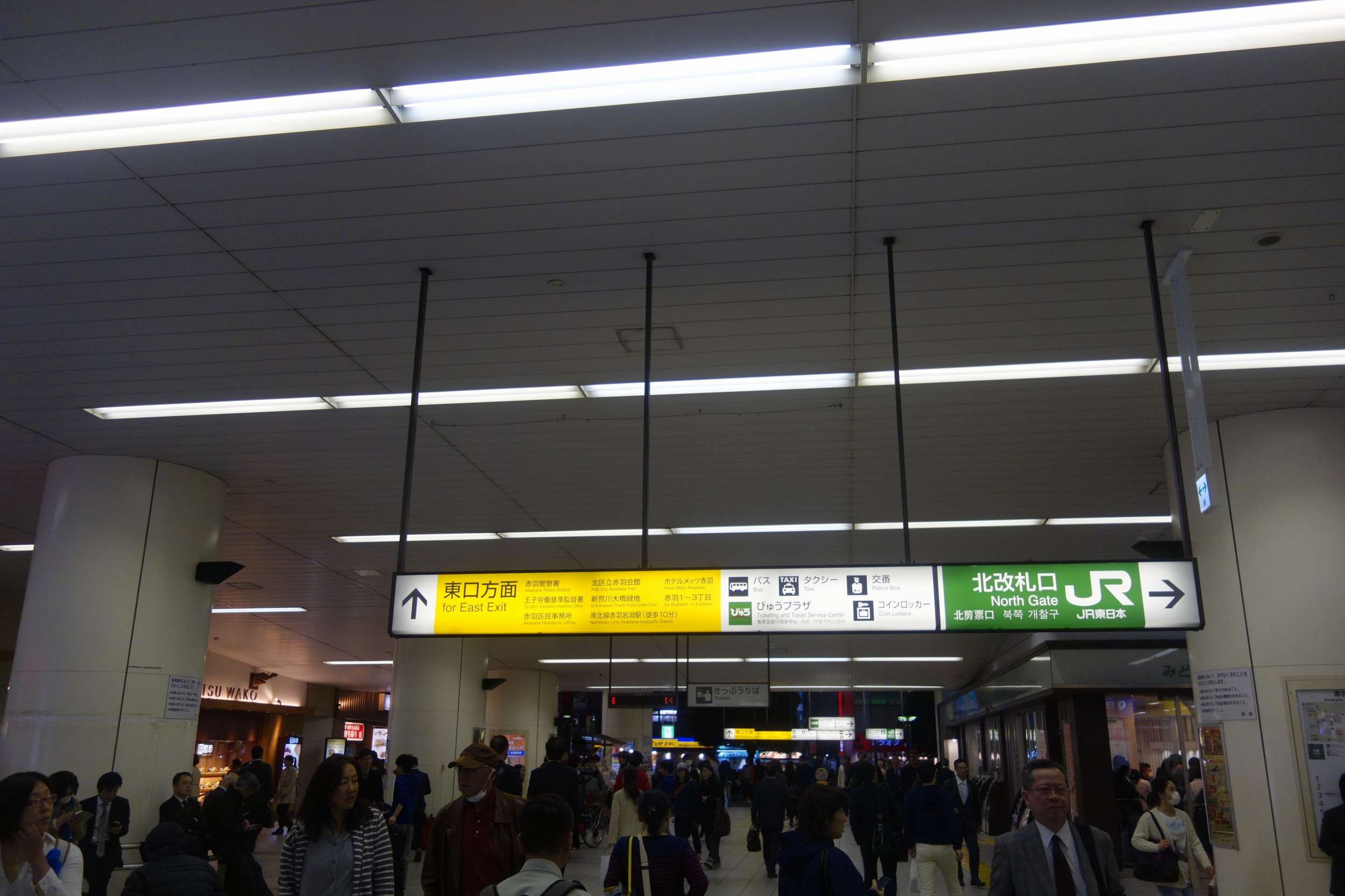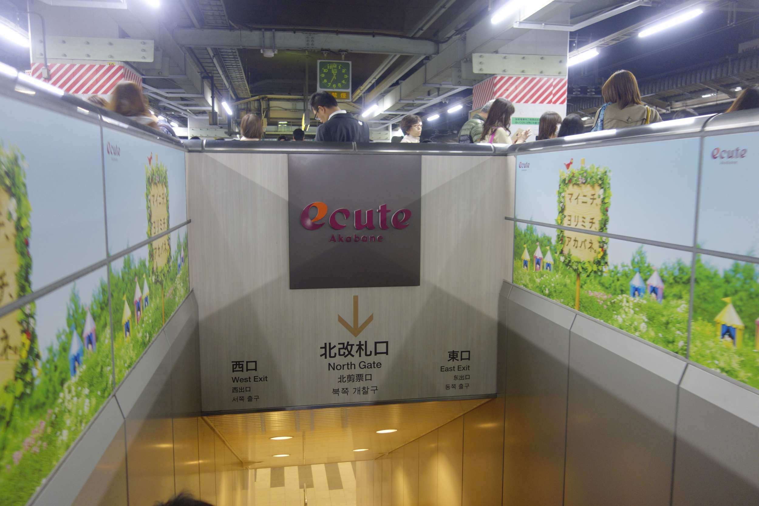 ecute赤羽横の通路を通って駅改札へと向かいます。