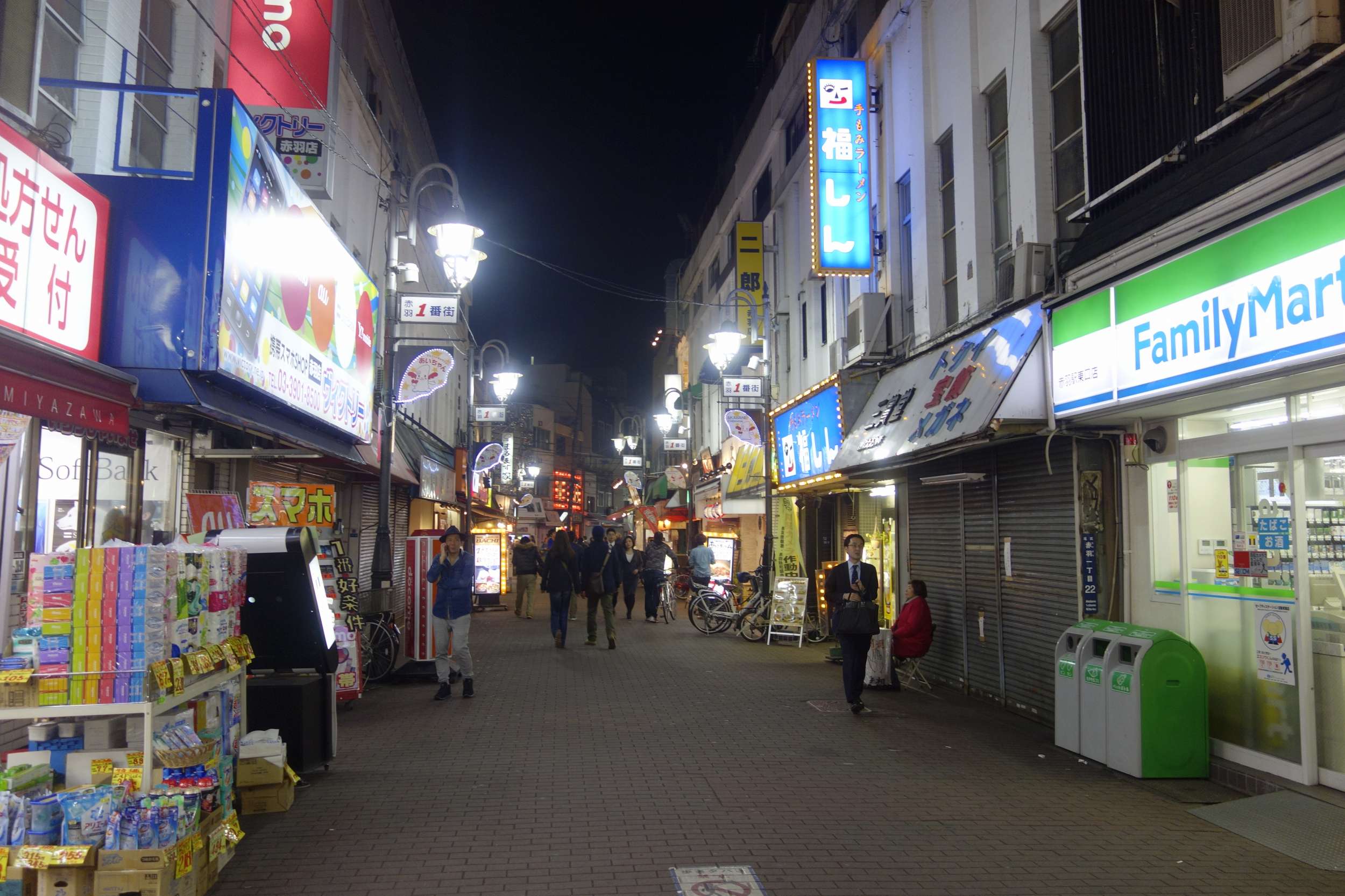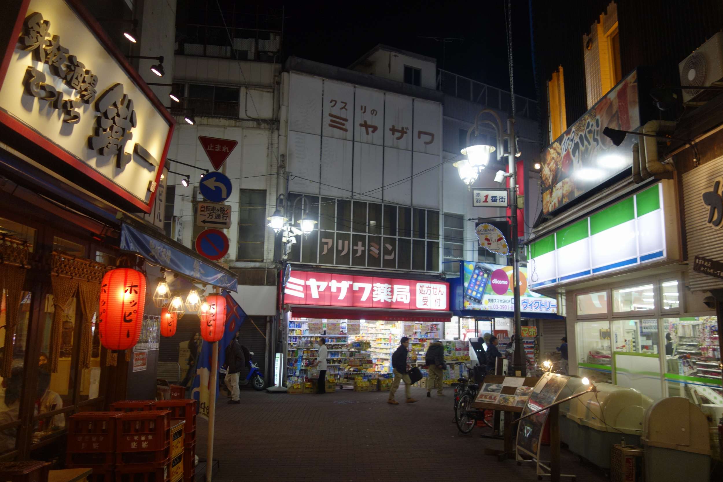 宮沢薬局前に到着後は、明るく飲み屋が集う右手に進んでいき