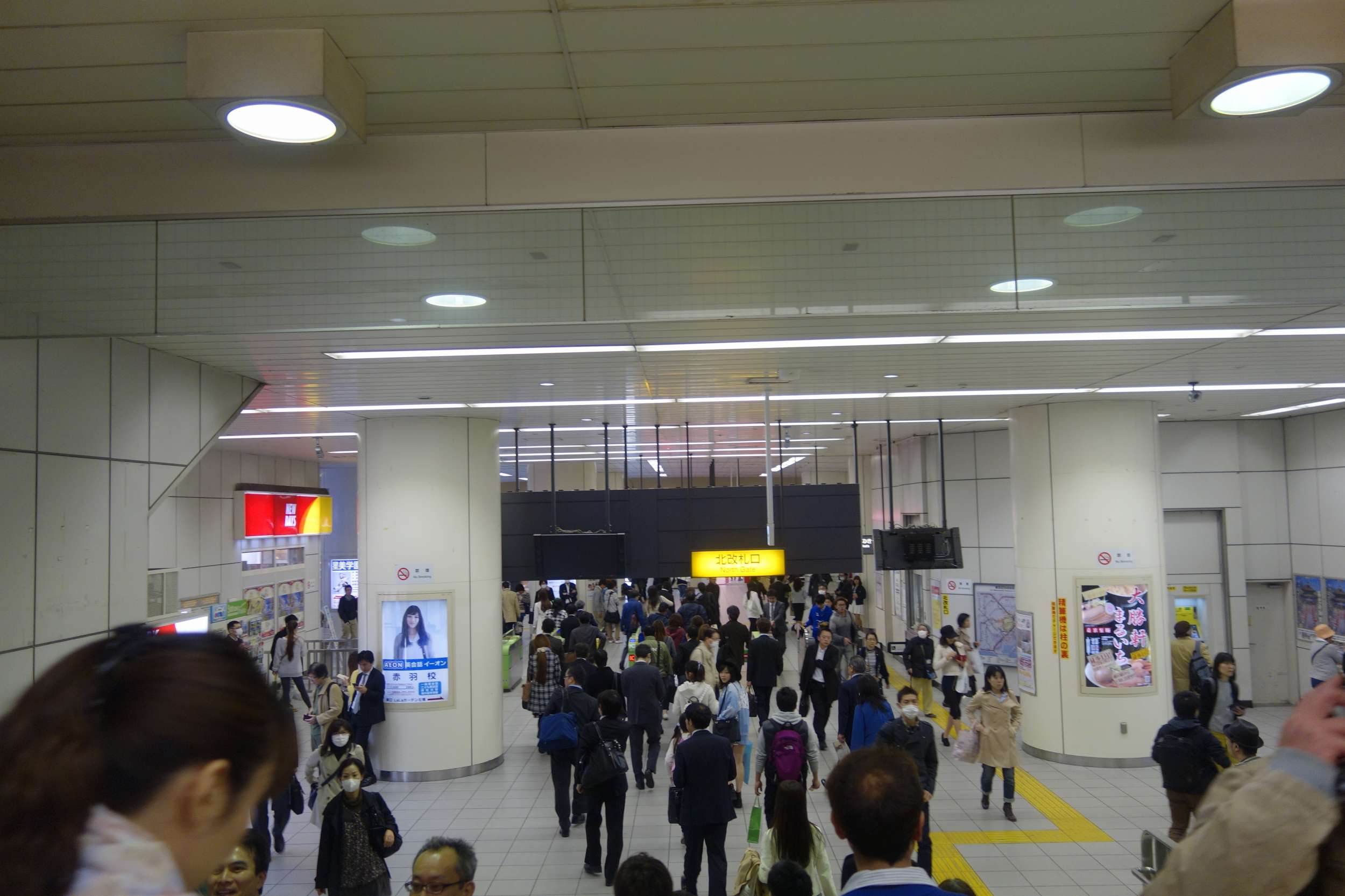 混雑する駅ホームを川口方面へと歩き進んでいき