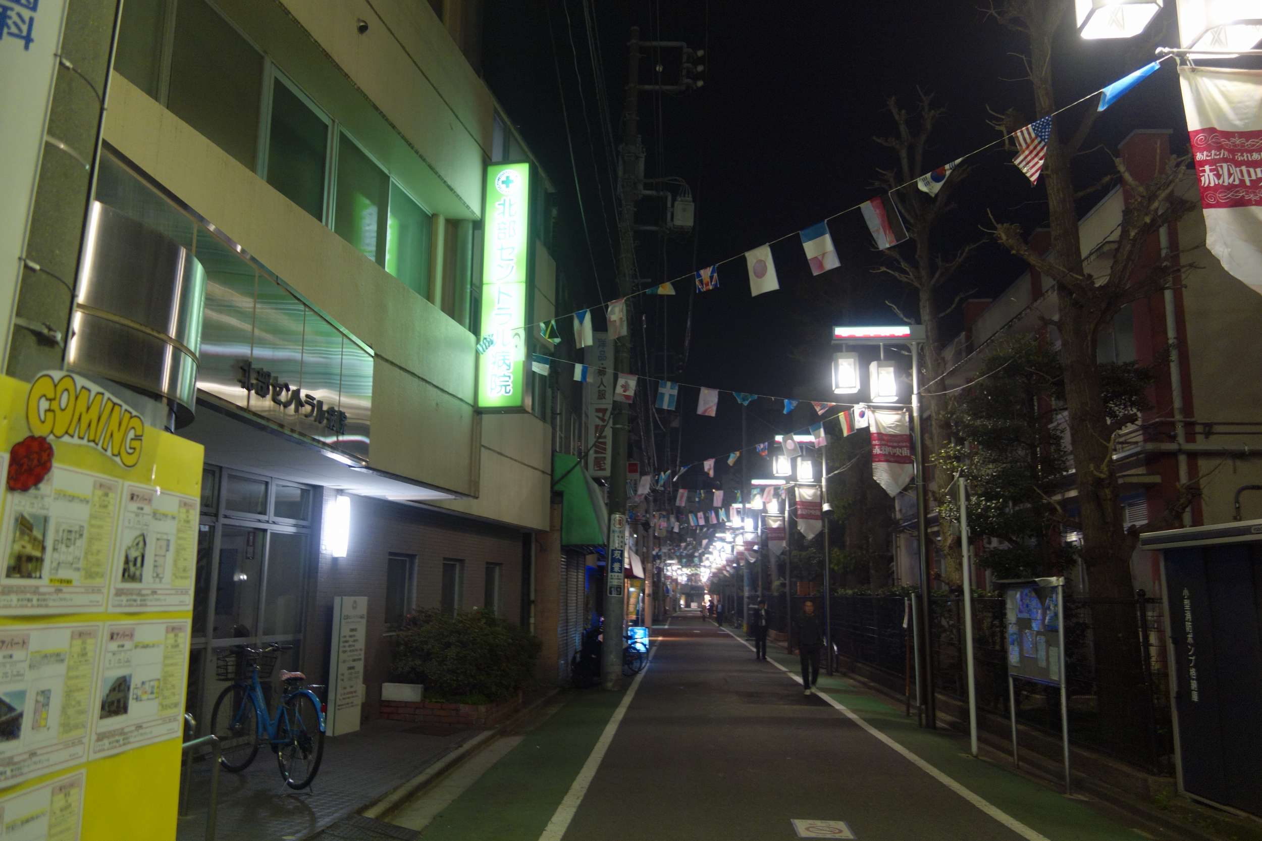 赤羽中央街は何故か運動会の学校のように万国旗がゆらめき