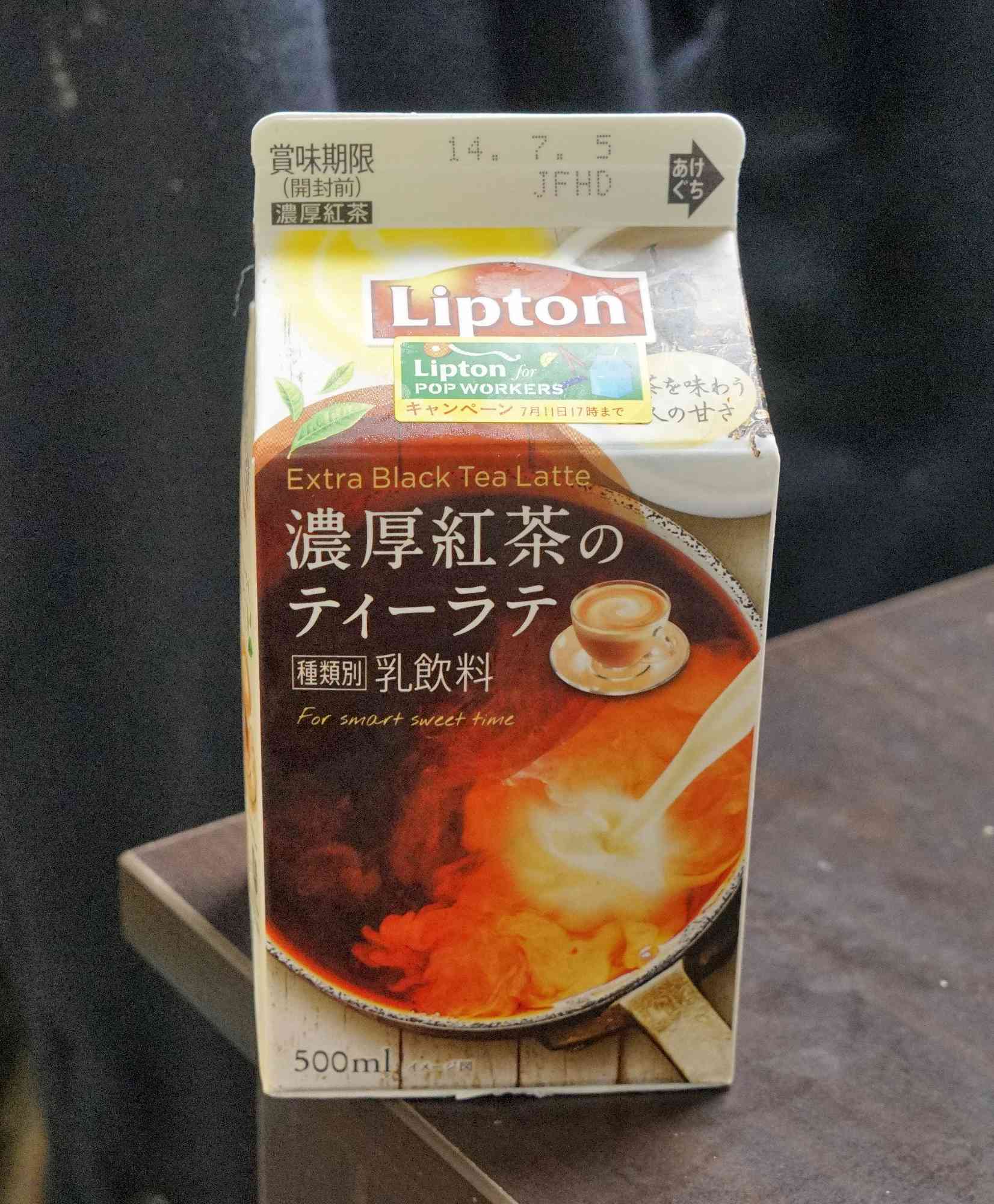 今日の飲み物は、横浜乳業株式会社製造のLipton Extra Black Tea Latte 濃厚茶葉のティーラテです。