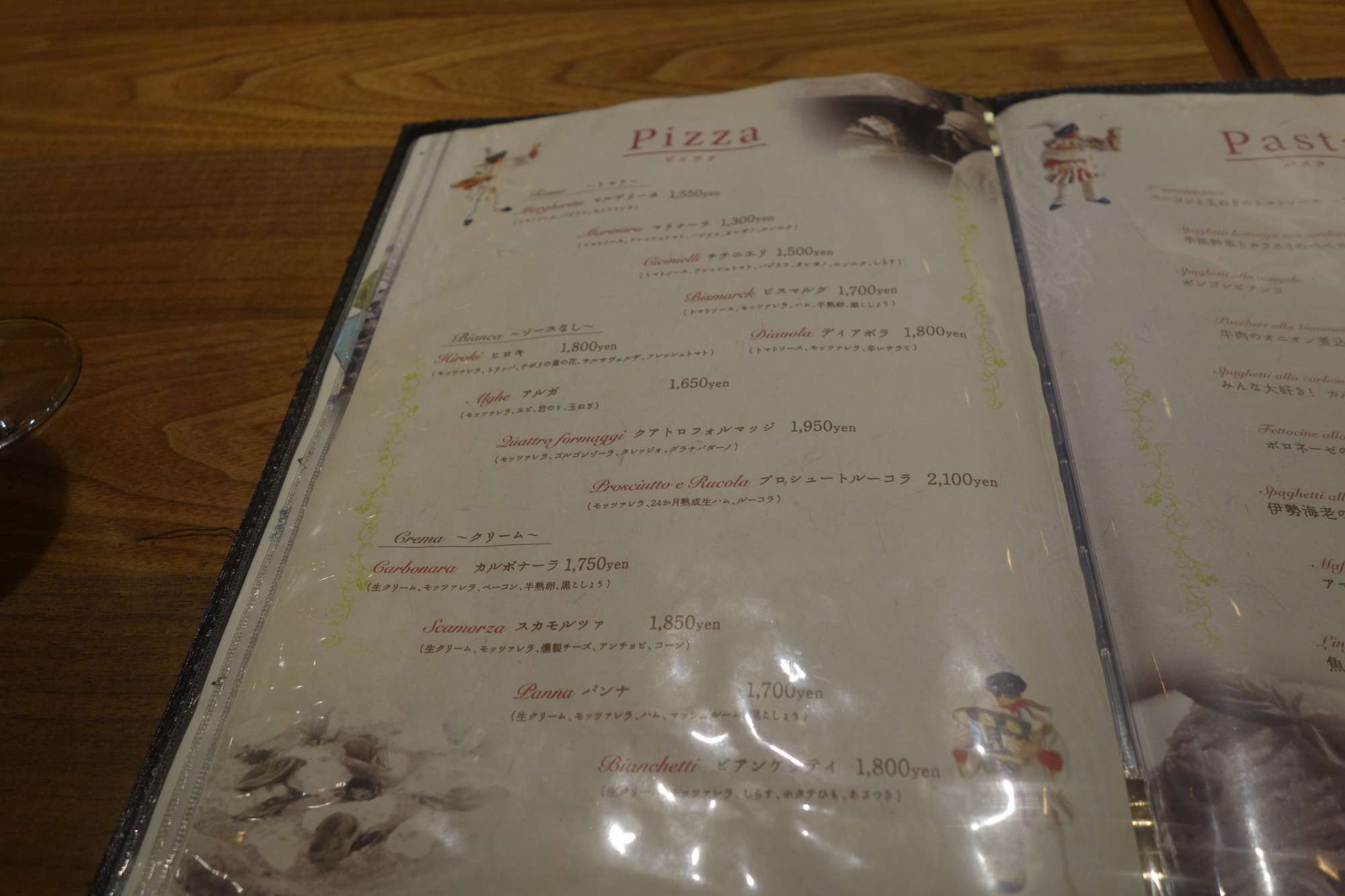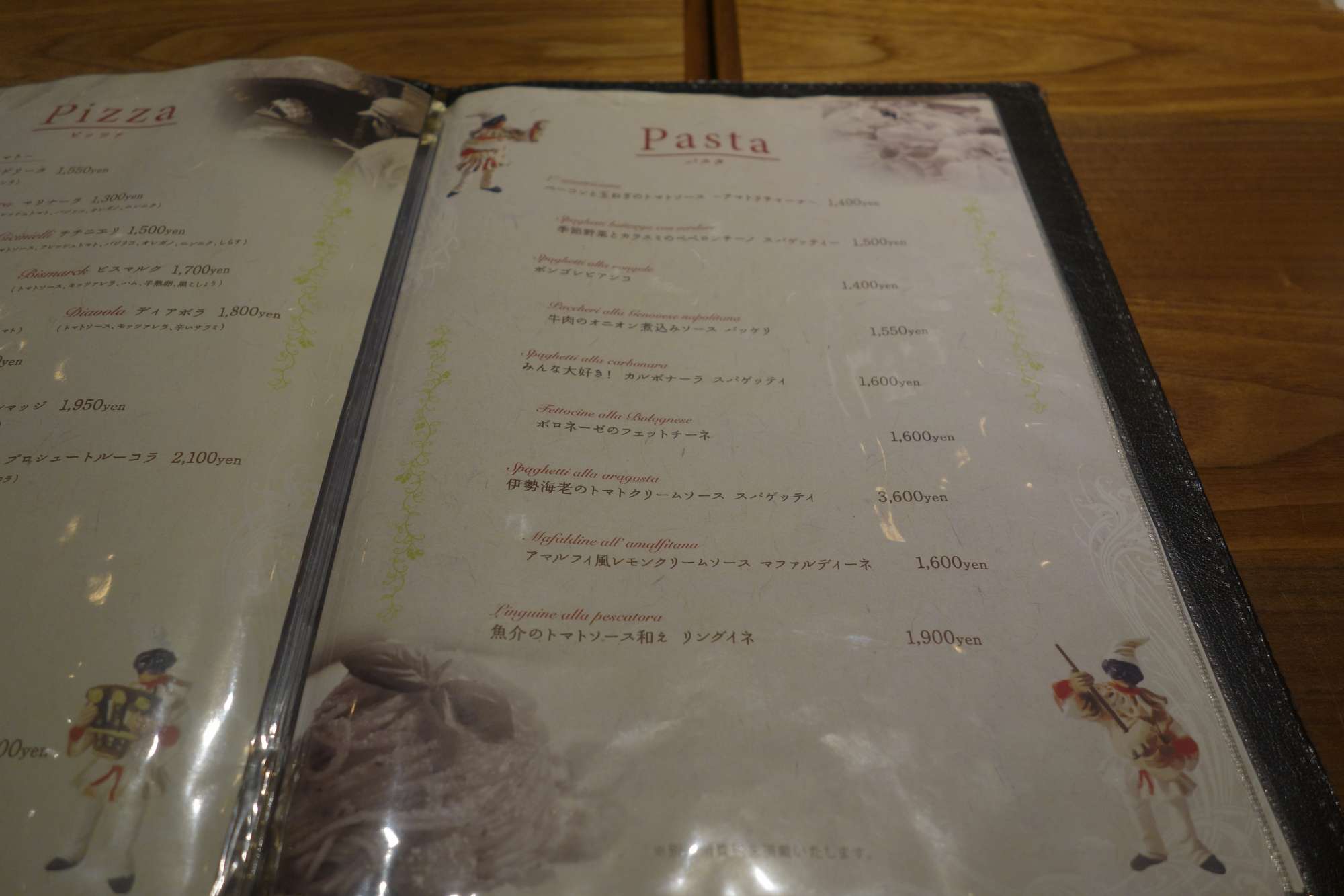 今回ファンタジスタドゥエで初めてピッツァやパスタなどの料理を楽しみました。