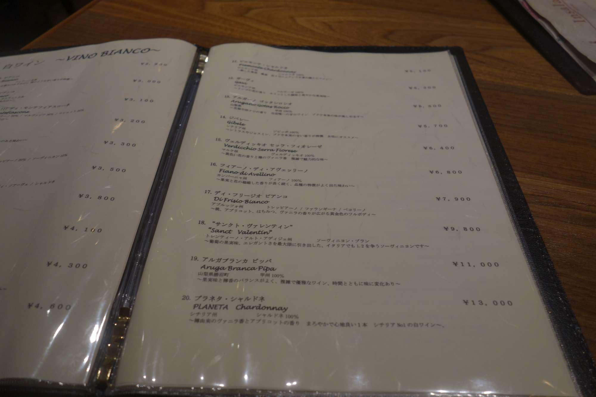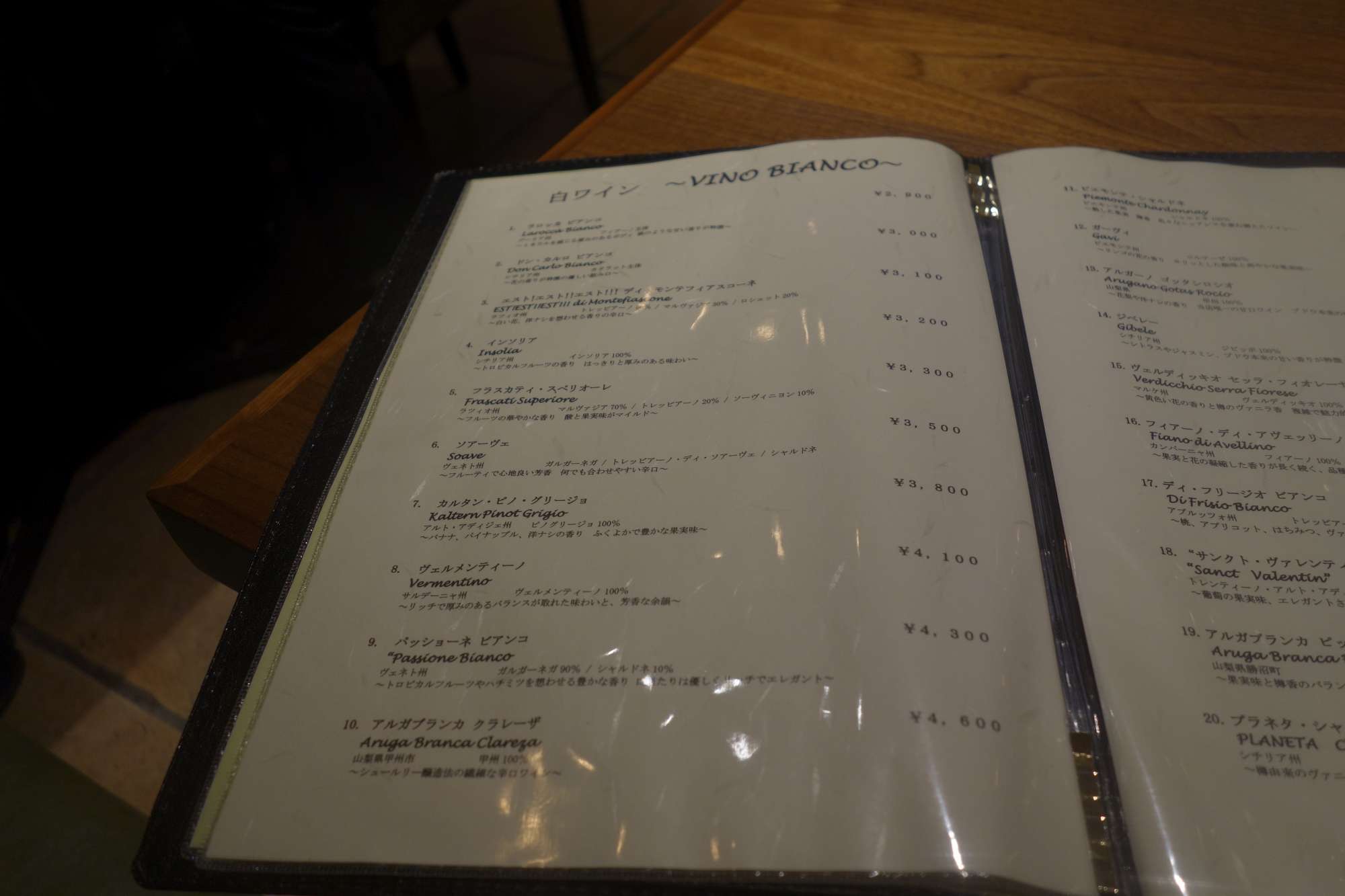 白ワインボトルメニュー